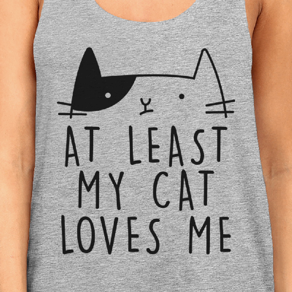 At Least My Cat Loves Women's Sleeveless Tank Top Cute Cat Graphic
