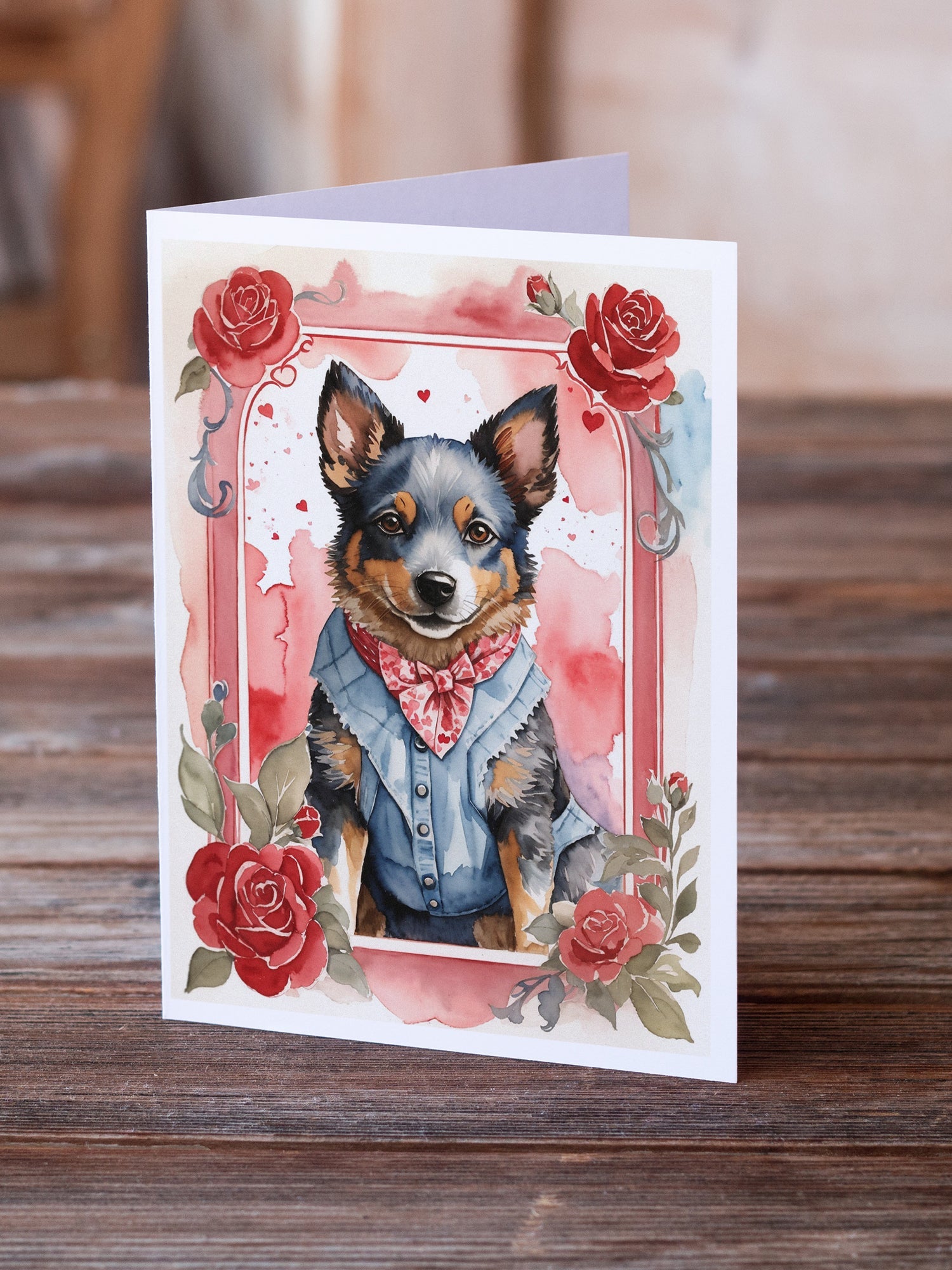 Australian Cattle Dog Valentine Roses Greeting Cards Pack of 8