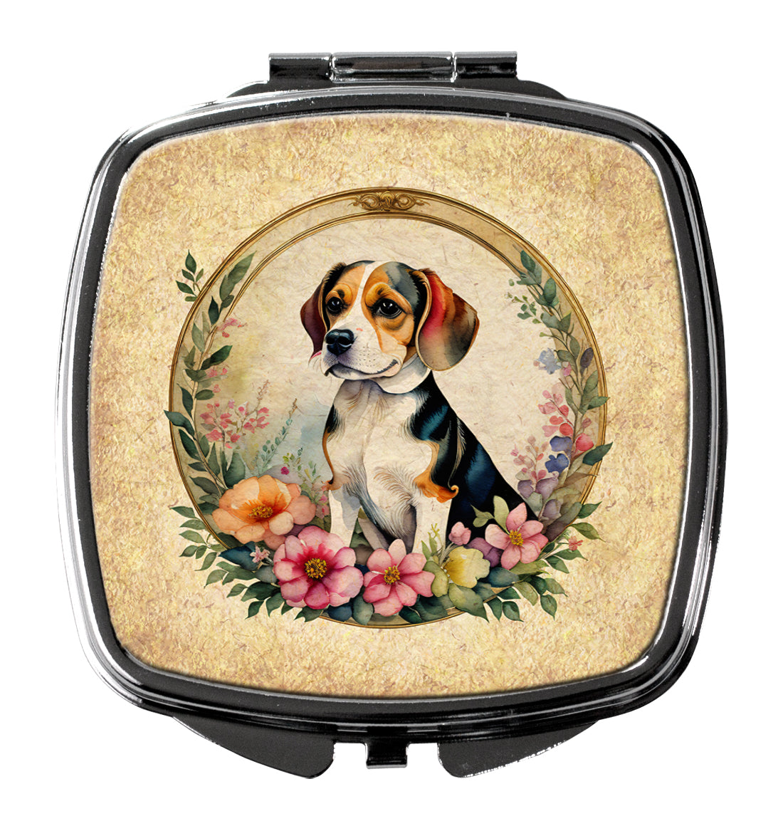 Beagle and Flowers Compact Mirror