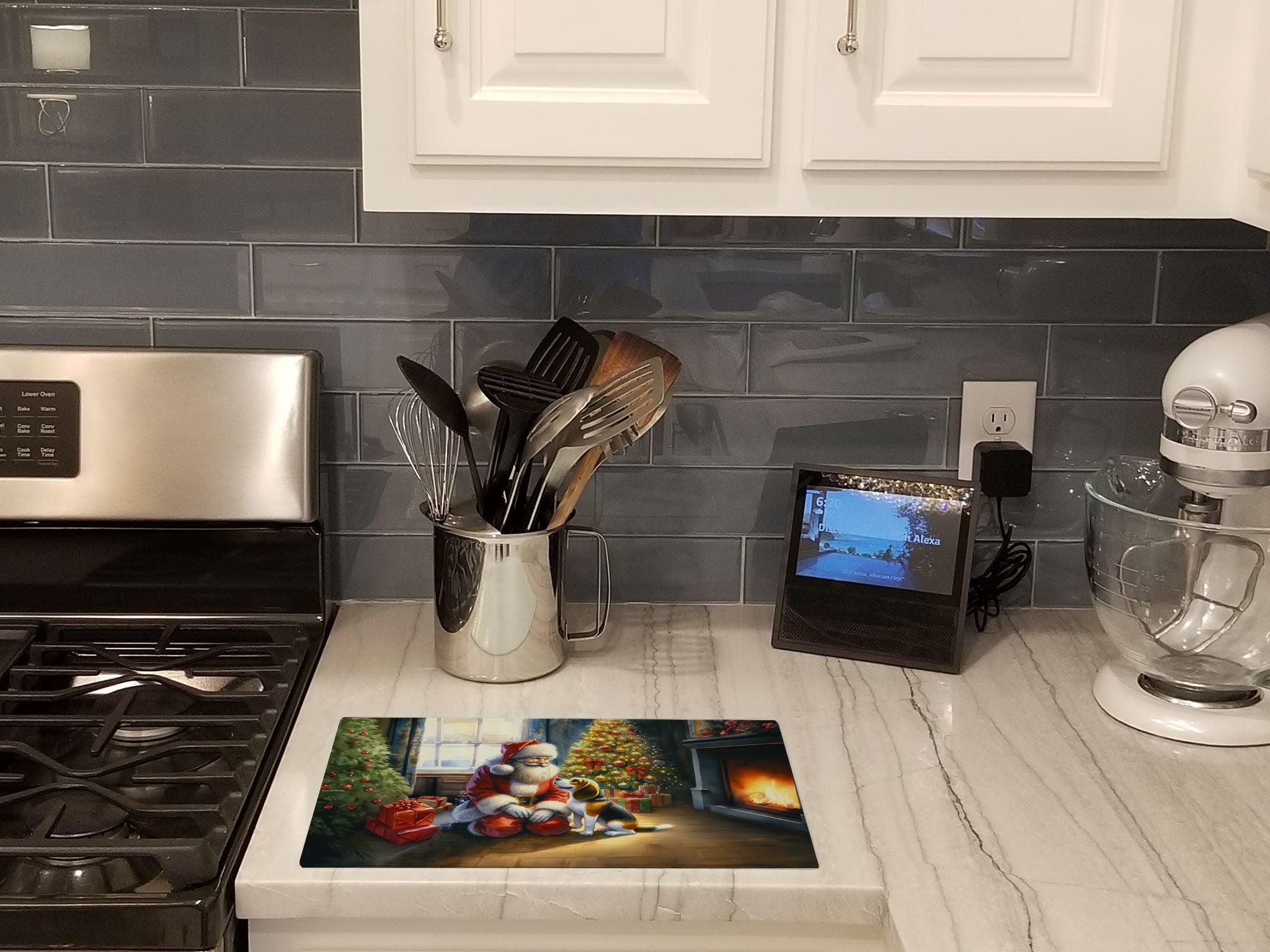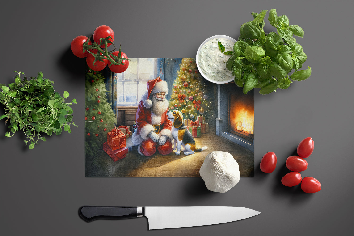 Beagle and Santa Claus Glass Cutting Board
