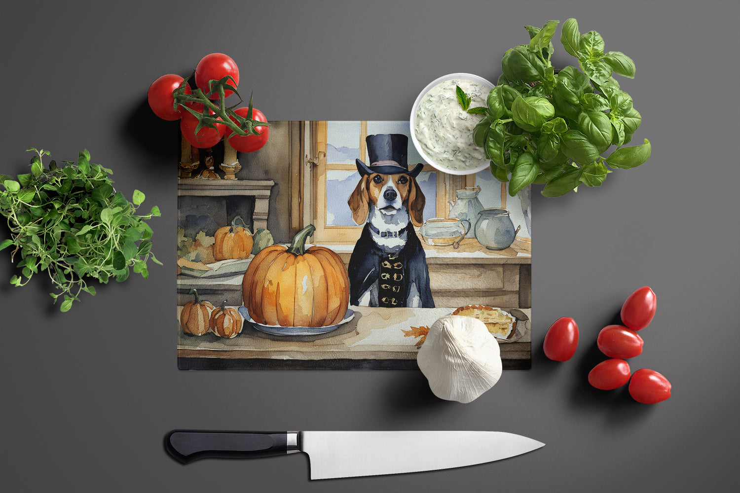 Beagle Fall Kitchen Pumpkins Glass Cutting Board