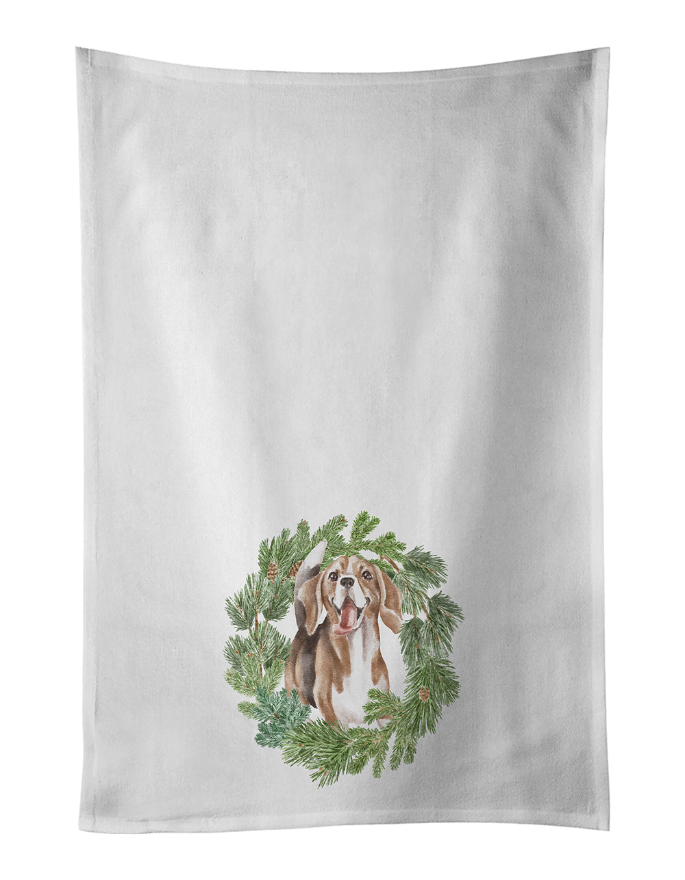 Beagle Smiling Christmas Wreath Kitchen Towel Set of 2