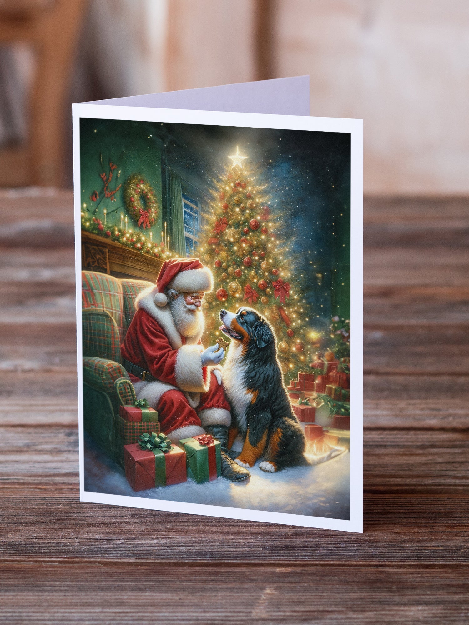 Bernese Mountain Dog and Santa Claus Greeting Cards Pack of 8