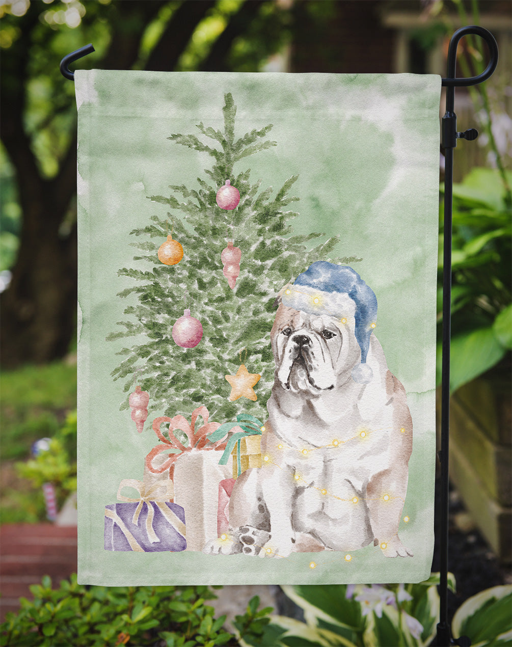 Bulldog, English Bulldog Christmas Presents and Tree Garden Flag
