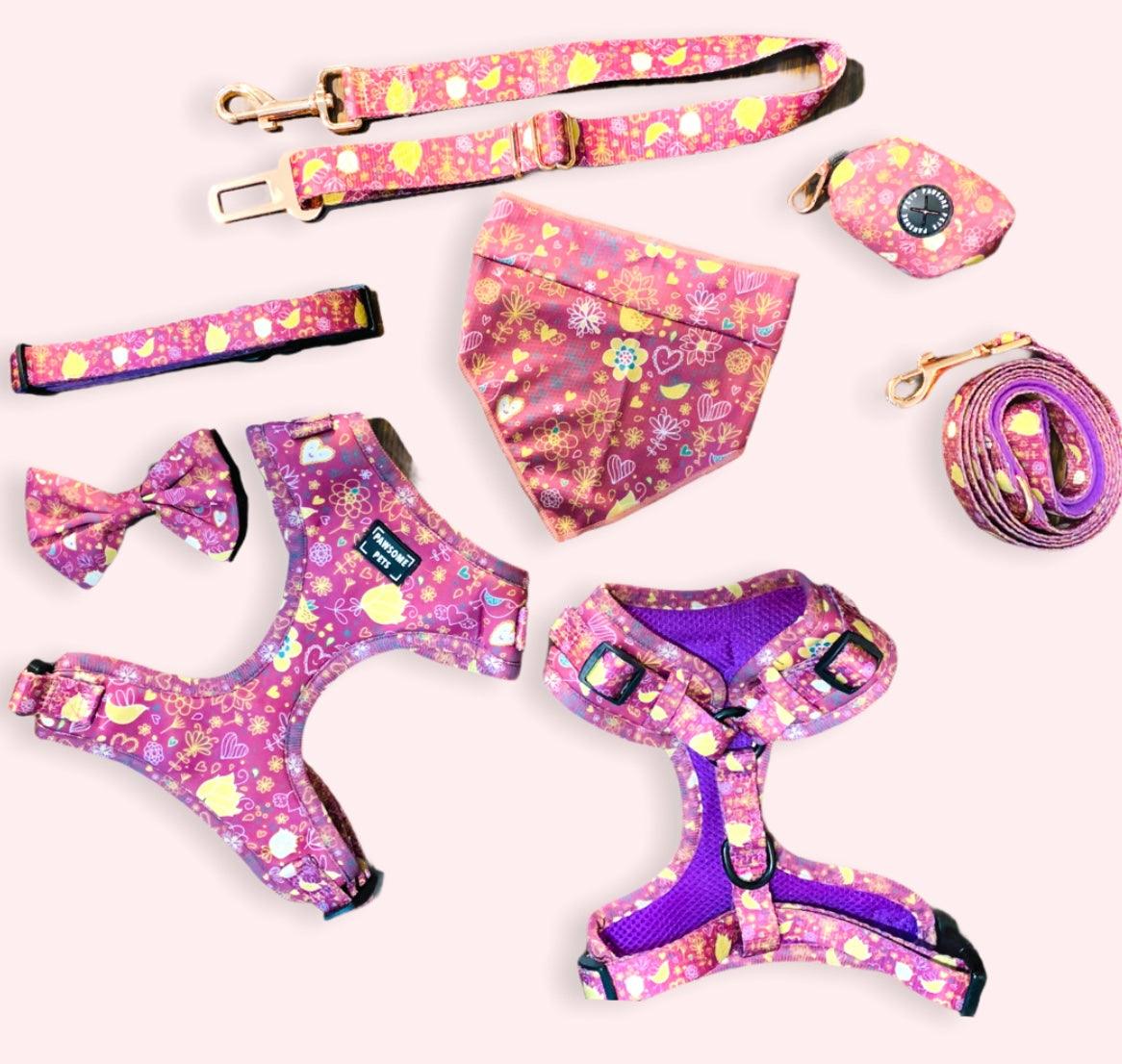 Our PAWSOMEPETSCA Original Patented Design 7 Pieces Bundle Includes Our Entire Signature⊹ Adjustable Harness⊹ Leash⊹ Collar⊹ Waste Bag Holder⊹ Bowtie⊹... Read more