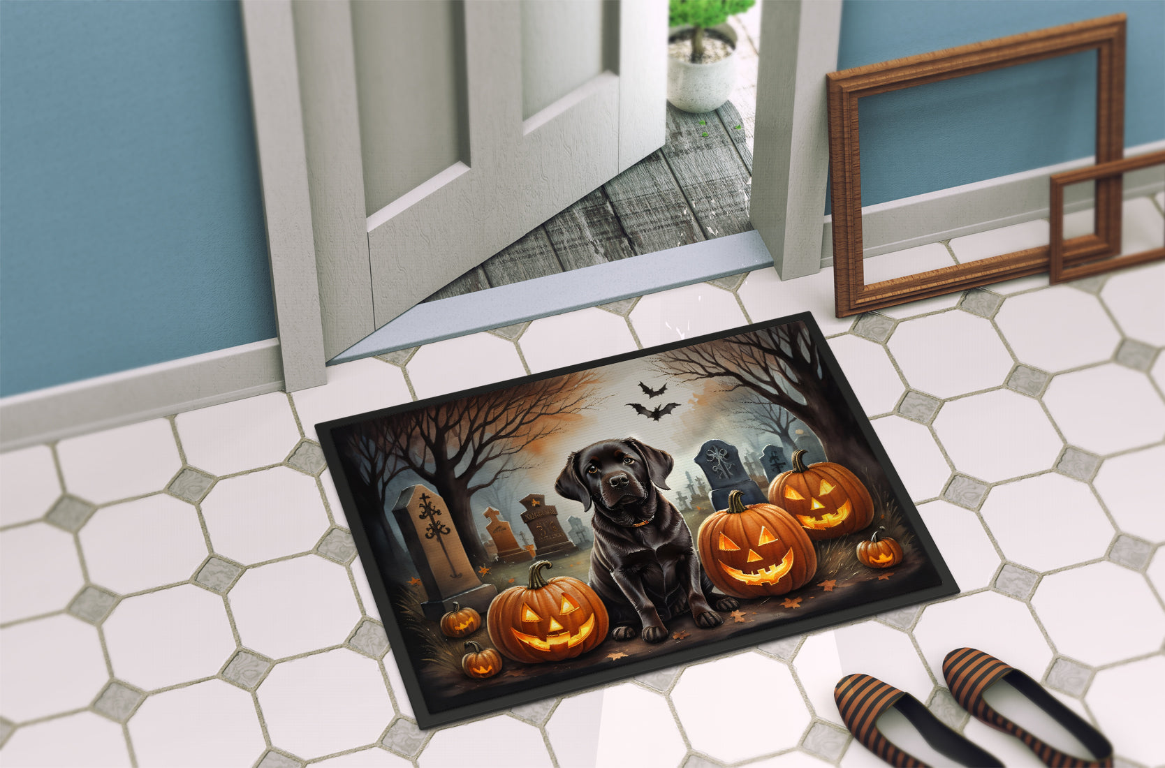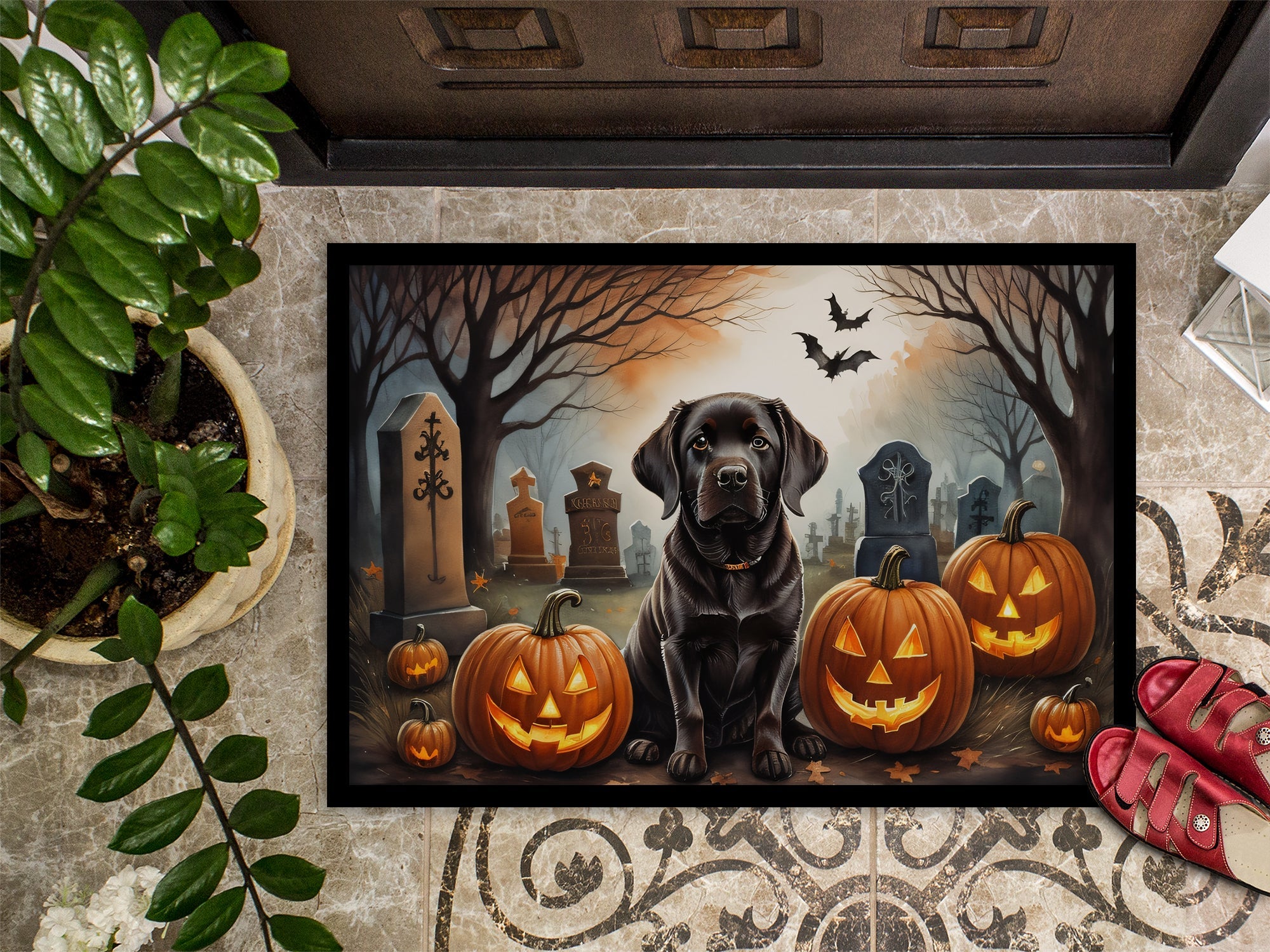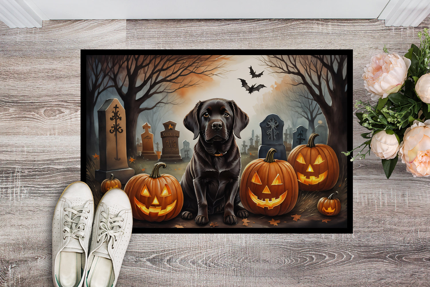 Chocolate Labrador Retriever Spooky Halloween Doormat
