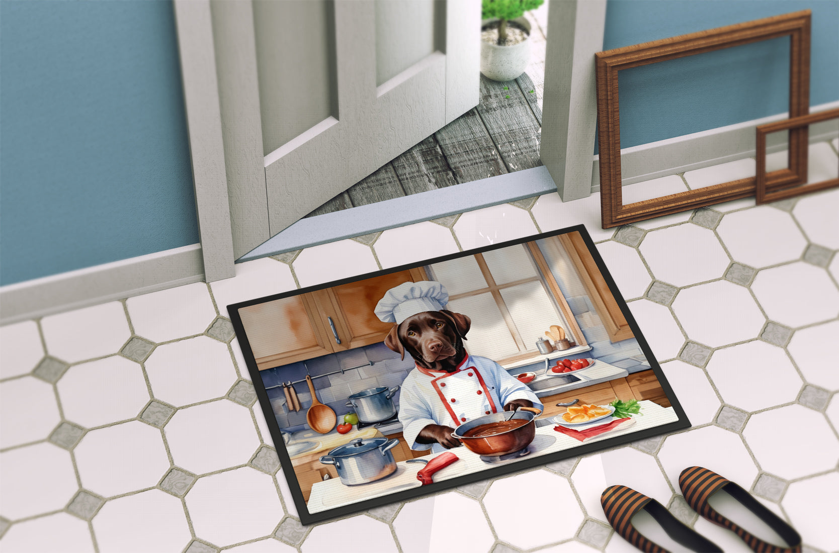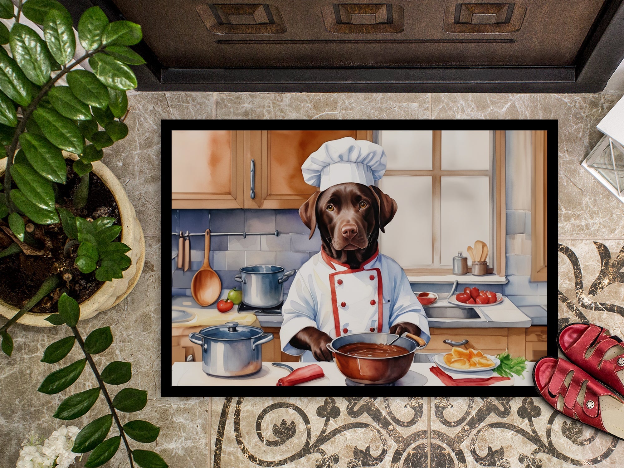 Chocolate Labrador Retriever the Chef Doormat