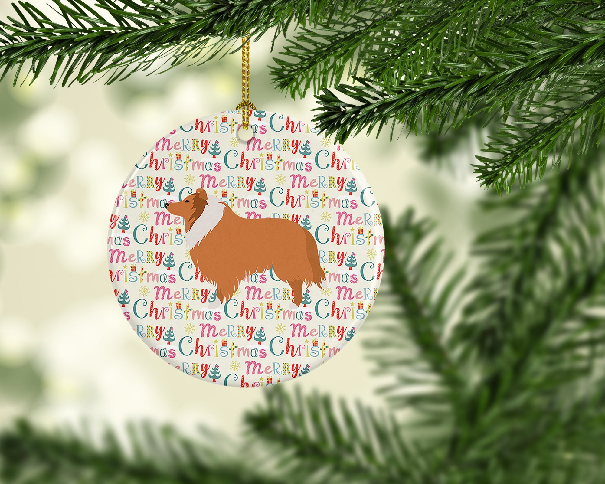 Collie Dog Merry Christmas Ceramic Ornament