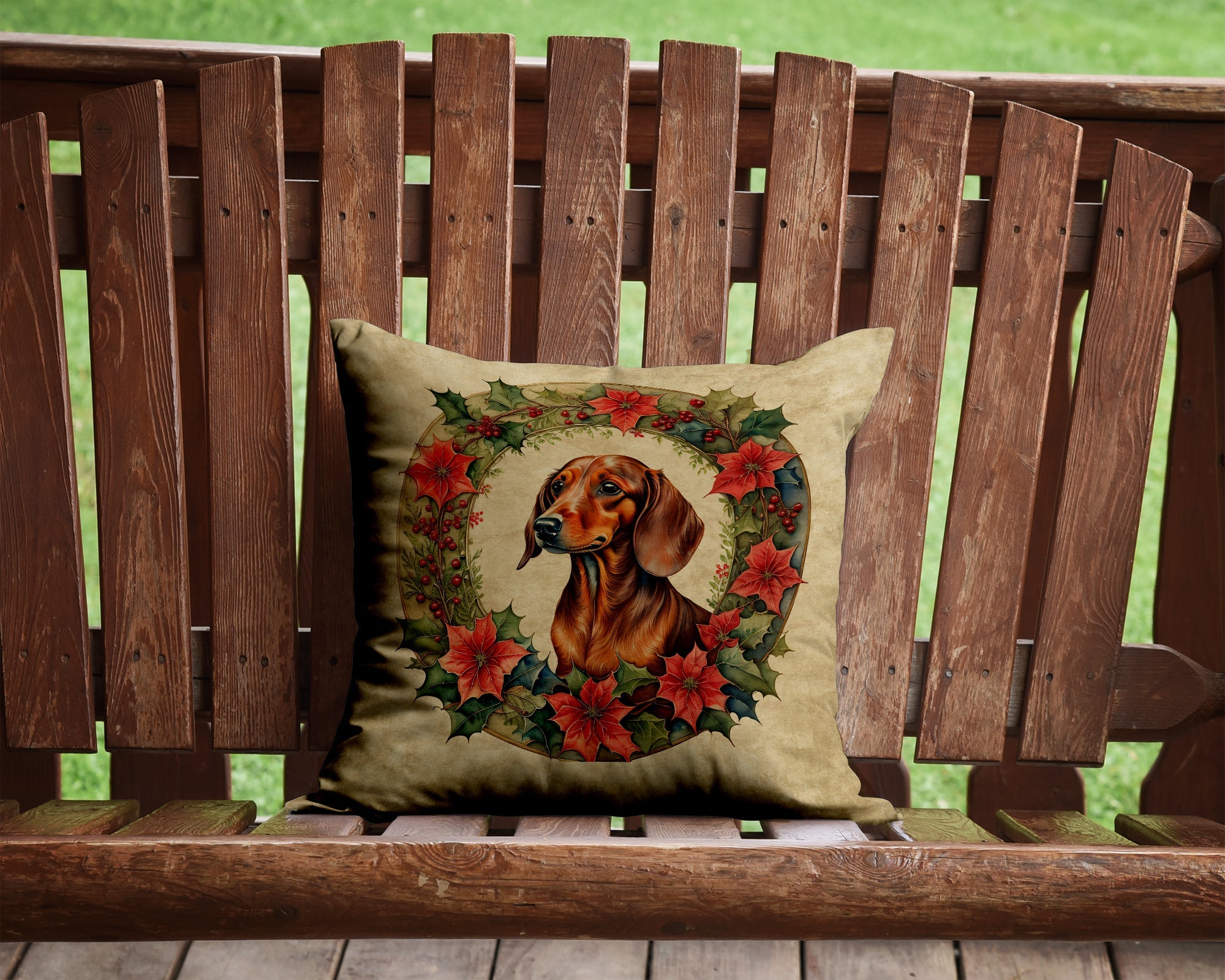 Throw Pillow featuring breed specific Dachshund artwork. Celebrate Christmas with this Christmas Pillow. Add a touch of vibrancy and comfort... Read more