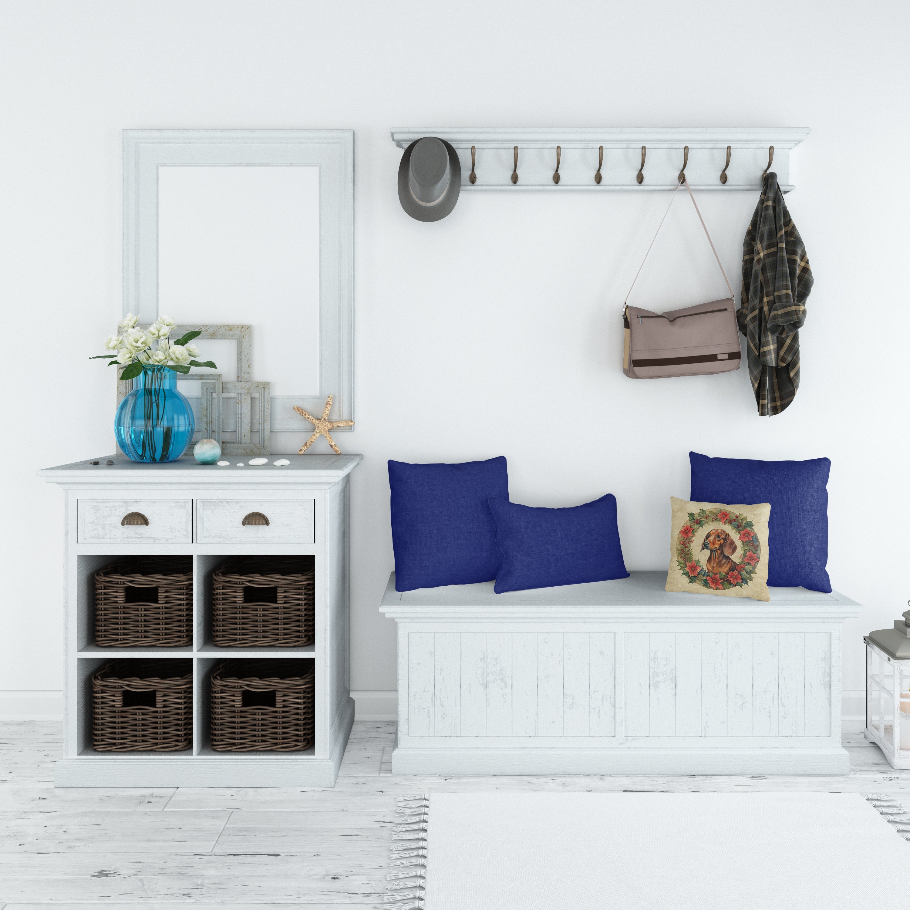 Dachshund Christmas Flowers Throw Pillow