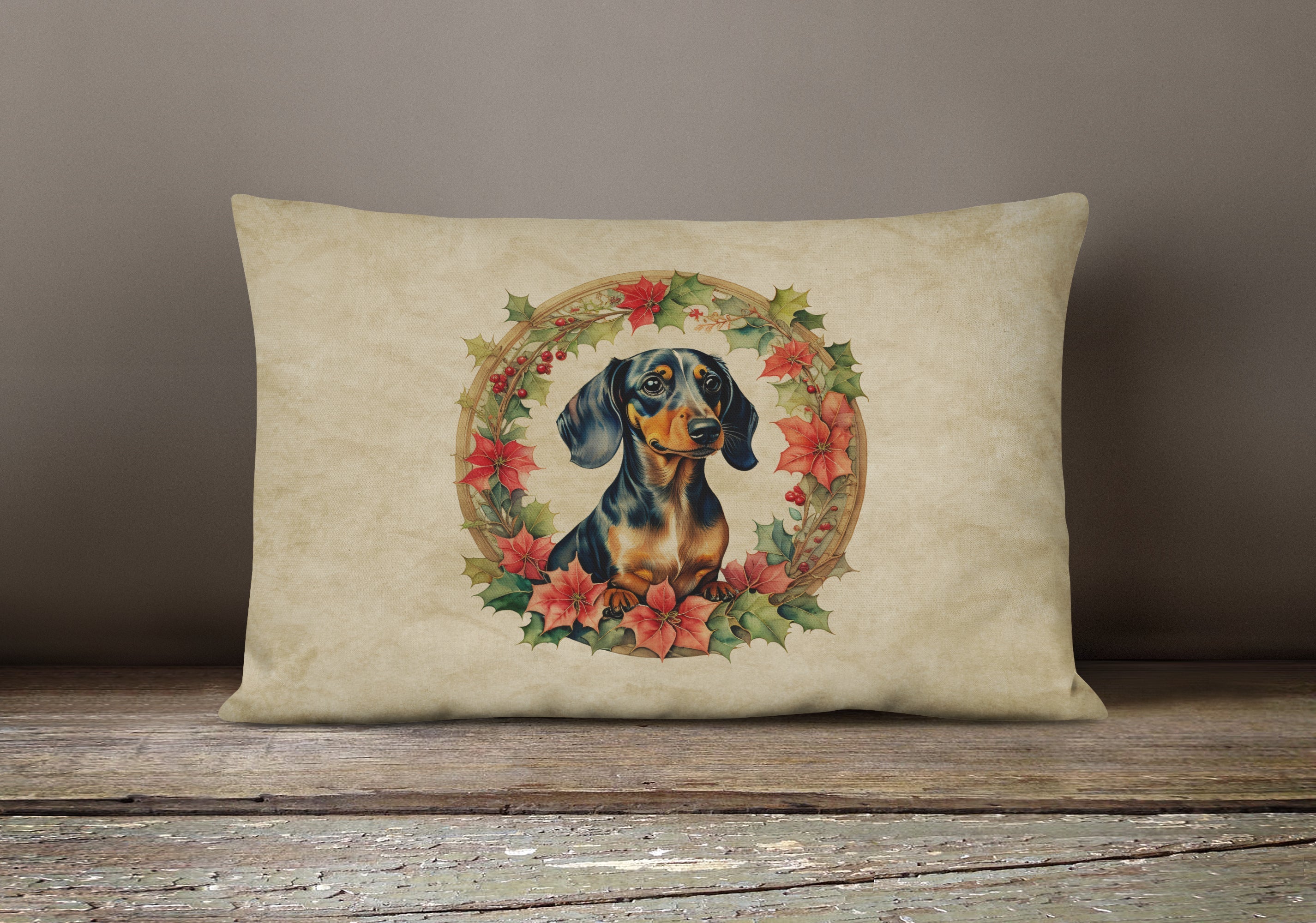 Throw Pillow featuring breed specific Dachshund artwork. Celebrate Christmas with this Christmas Pillow. Embrace the fusion of comfort and style with Caroline's Treasures Fabric Decorative Pillow. This 12x16 inch outdoor pillow is designed to complement your patio furniture, adding a splash of color and artistry to your outdoor setting. Constructed with a 100% Polyester Fabric pillow sham filled with a plush pillow form, this cushion is as comfortable as it is durable. Our outdoor pillow utilizes a novel fabric, meticulously woven for enhanced water resistance. This soft canvas material is equally suited for your indoor couch as well as outdoor settings such as the patio, porch, or veranda. To ensure enduring vibrance, we employ colorfast dyes resistant to fading even when subjected to weather elements. The making of this pillow involves the delicate sewing together of three fabric pieces to create a sham, into which a polyester insert is carefully placed. The result is an overstuffed pillow that tenaciously holds its shape. With both the sham and the pillow insert crafted in the United States, these handmade pillows are a testament to superior local craftsmanship. Note that as these pillows are handmade, sizes may slightly vary, enhancing their unique appeal. Enjoy comfort in style with Caroline's Treasures Fabric Decorative Pillow.