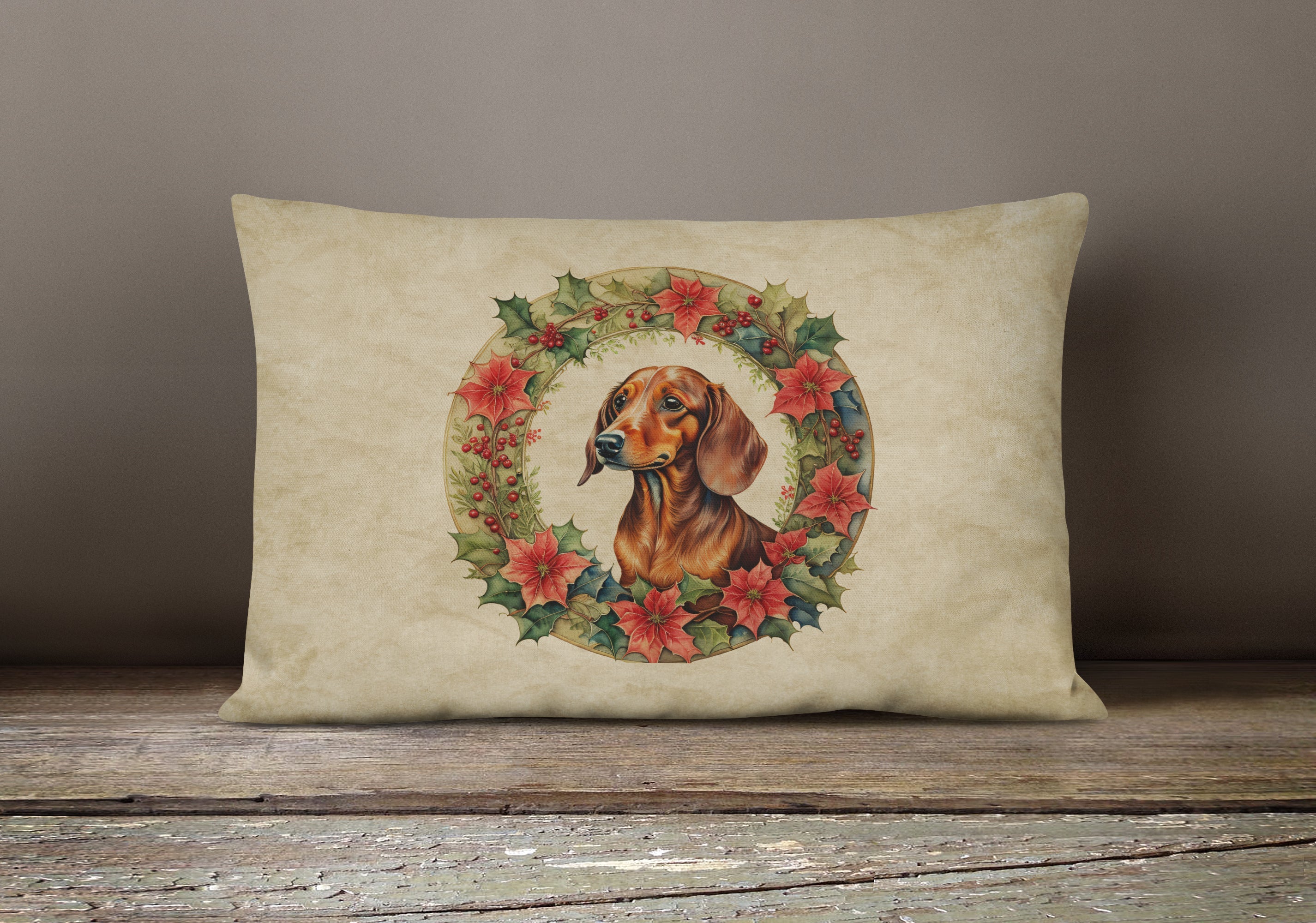 Throw Pillow featuring breed specific Dachshund artwork. Celebrate Christmas with this Christmas Pillow. Embrace the fusion of comfort and style... Read more