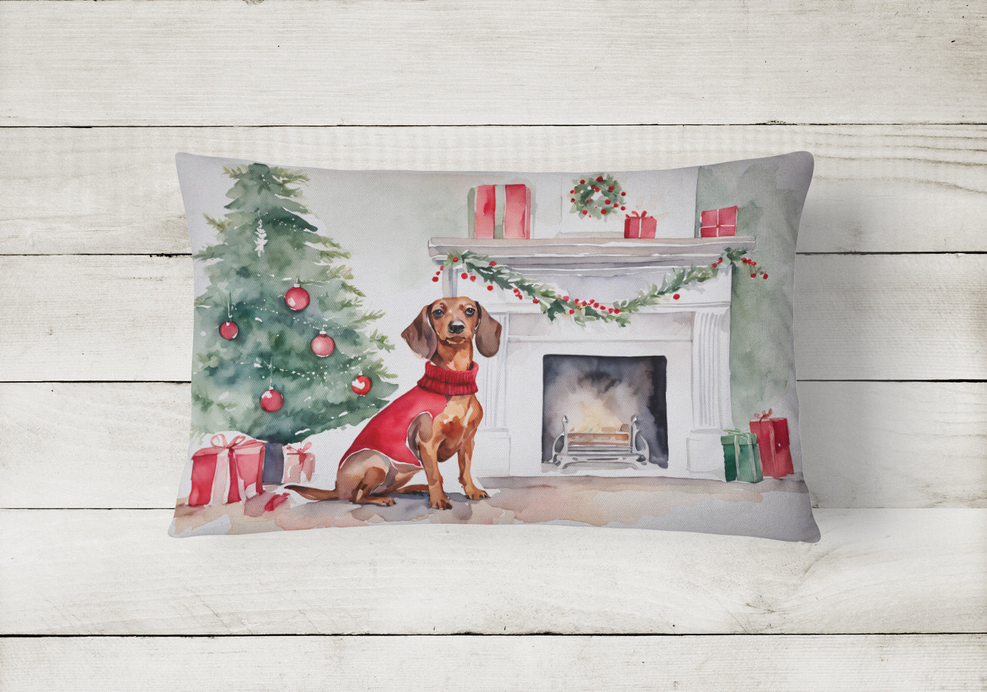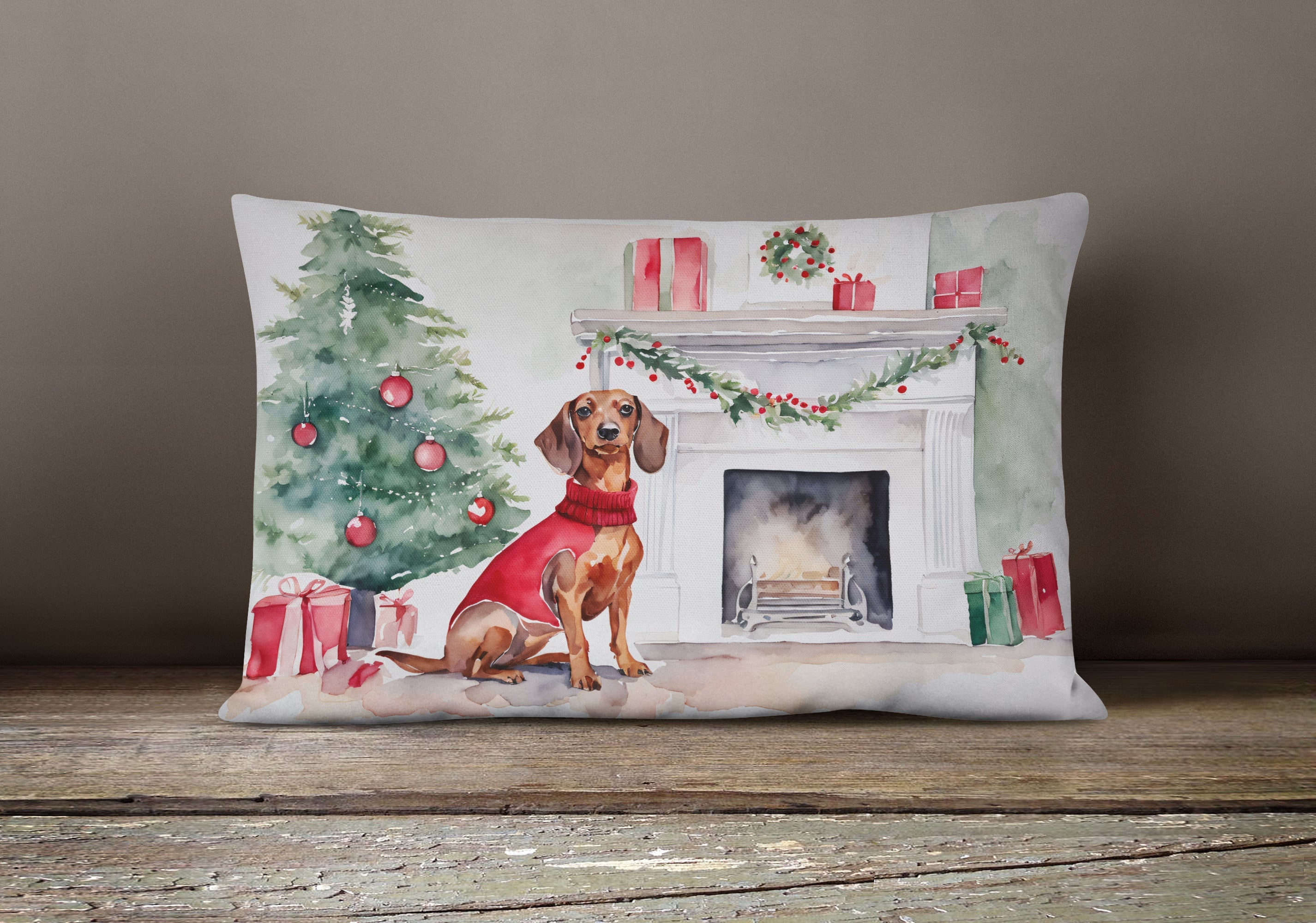Throw Pillow featuring breed specific Dachshund artwork. Celebrate Christmas with this Christmas Pillow. Embrace the fusion of comfort and style with Caroline's Treasures Fabric Decorative Pillow. This 12x16 inch outdoor pillow is designed to complement your patio furniture, adding a splash of color and artistry to your outdoor setting. Constructed with a 100% Polyester Fabric pillow sham filled with a plush pillow form, this cushion is as comfortable as it is durable. Our outdoor pillow utilizes a novel fabric, meticulously woven for enhanced water resistance. This soft canvas material is equally suited for your indoor couch as well as outdoor settings such as the patio, porch, or veranda. To ensure enduring vibrance, we employ colorfast dyes resistant to fading even when subjected to weather elements. The making of this pillow involves the delicate sewing together of three fabric pieces to create a sham, into which a polyester insert is carefully placed. The result is an overstuffed pillow that tenaciously holds its shape. With both the sham and the pillow insert crafted in the United States, these handmade pillows are a testament to superior local craftsmanship. Note that as these pillows are handmade, sizes may slightly vary, enhancing their unique appeal. Enjoy comfort in style with Caroline's Treasures Fabric Decorative Pillow.