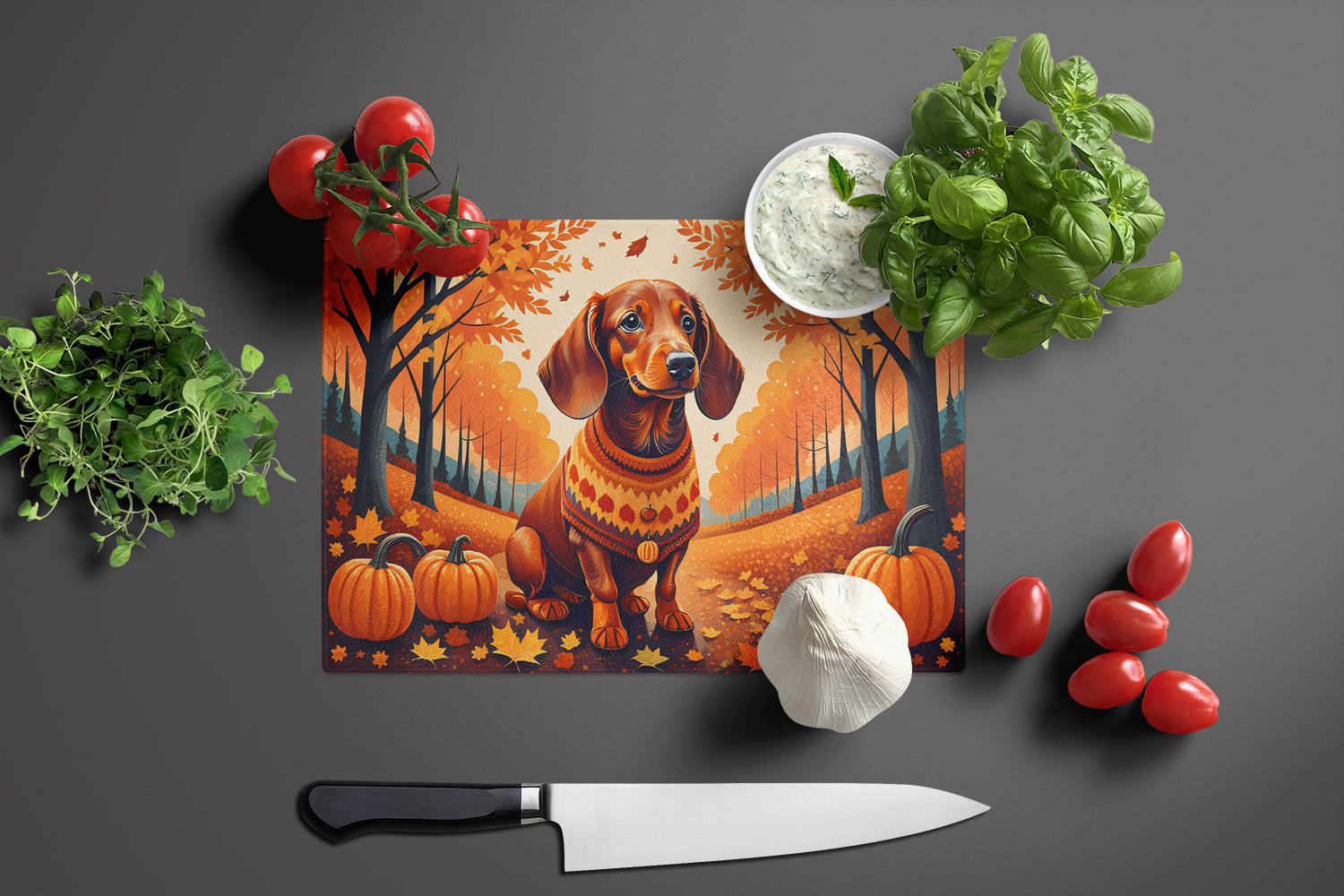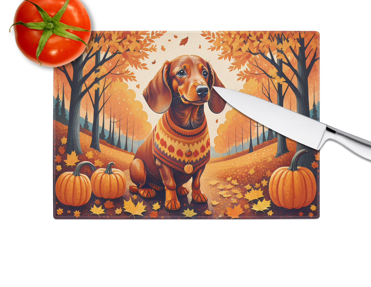 Dachshund Fall Glass Cutting Board