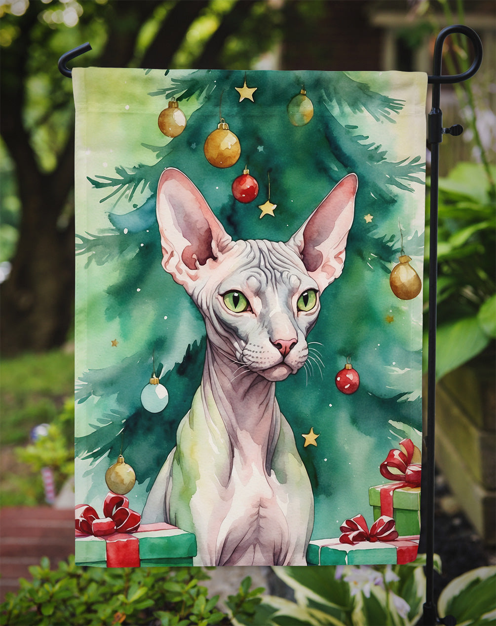 Donskoy Don Sphynx Cat by the Christmas Tree Garden Flag
