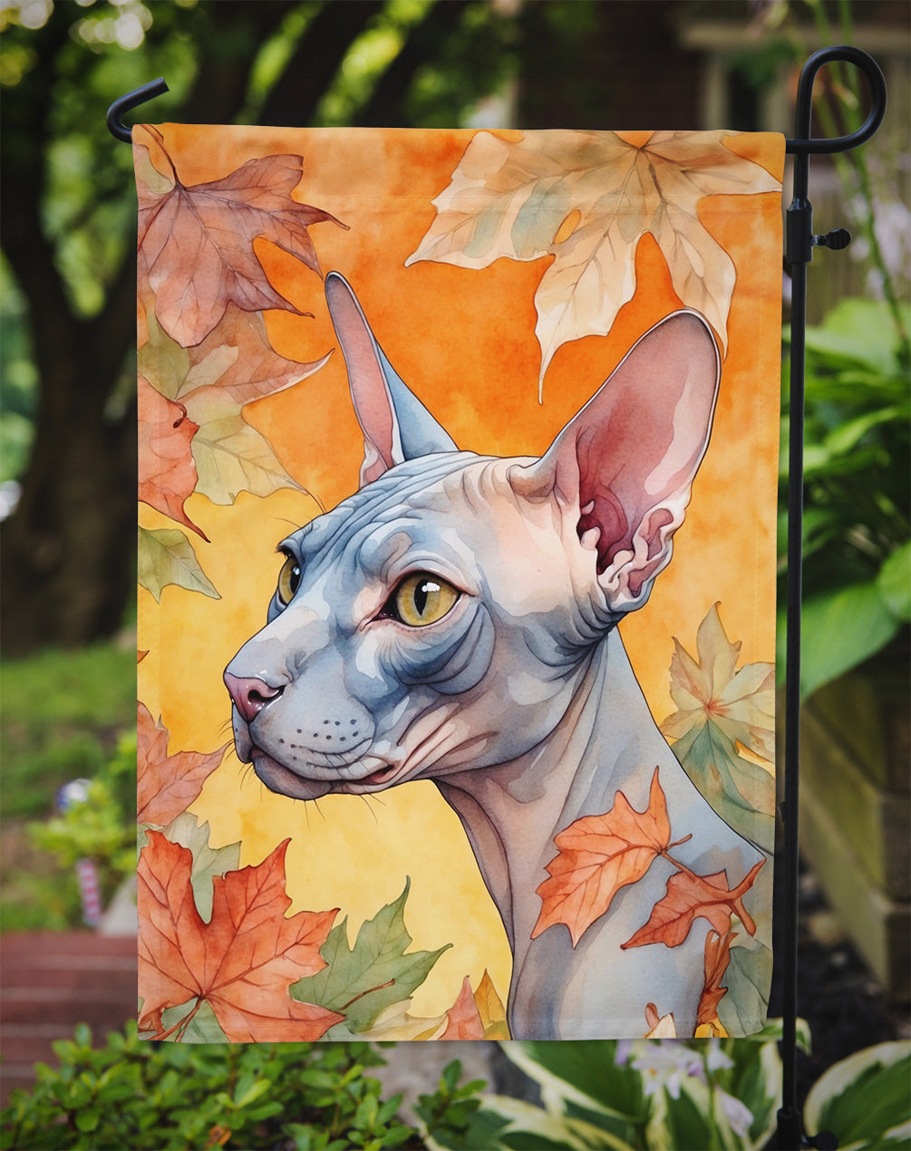 Donskoy Don Sphynx Cat in Fall Leaves Garden Flag