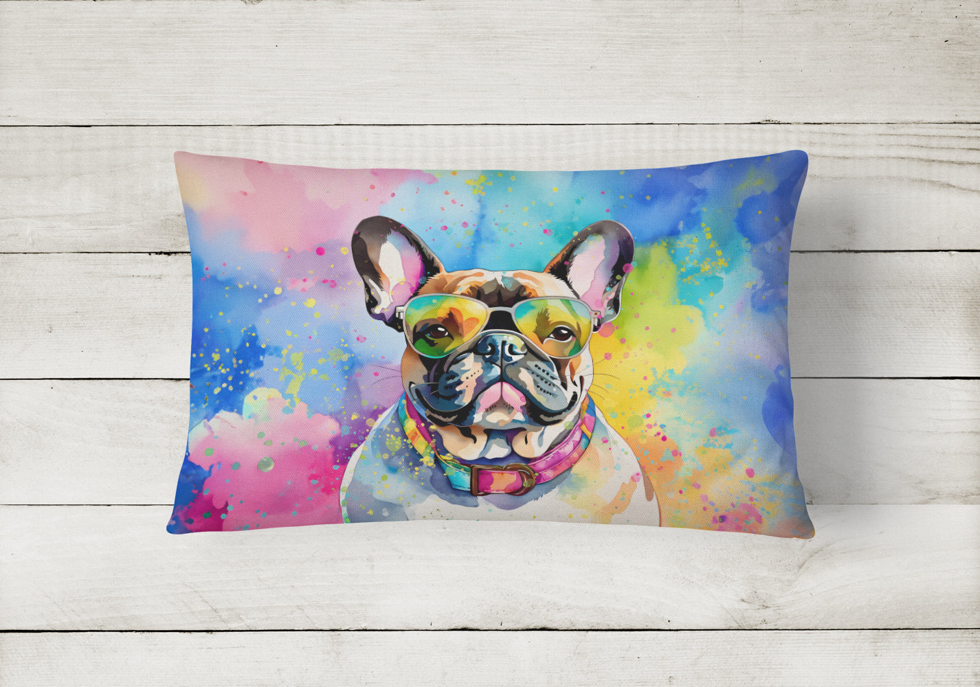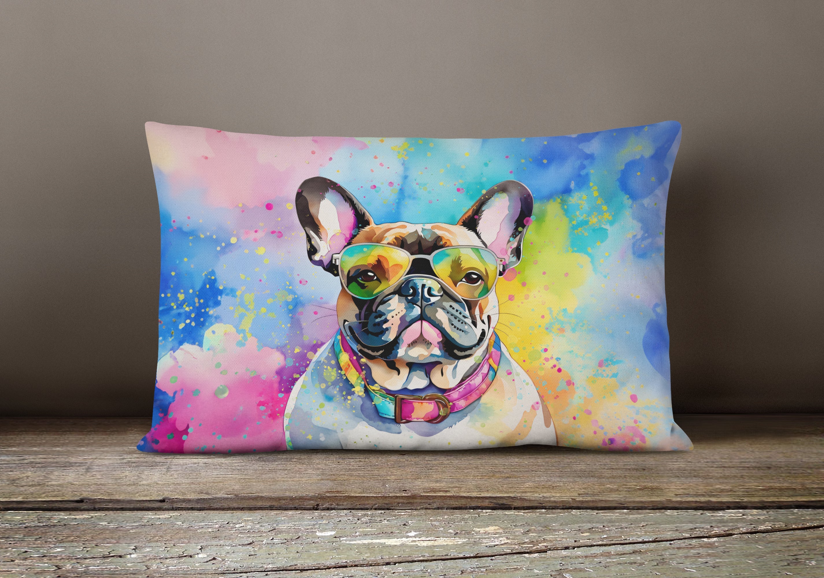 French Bulldog Hippie Dawg Throw Pillow