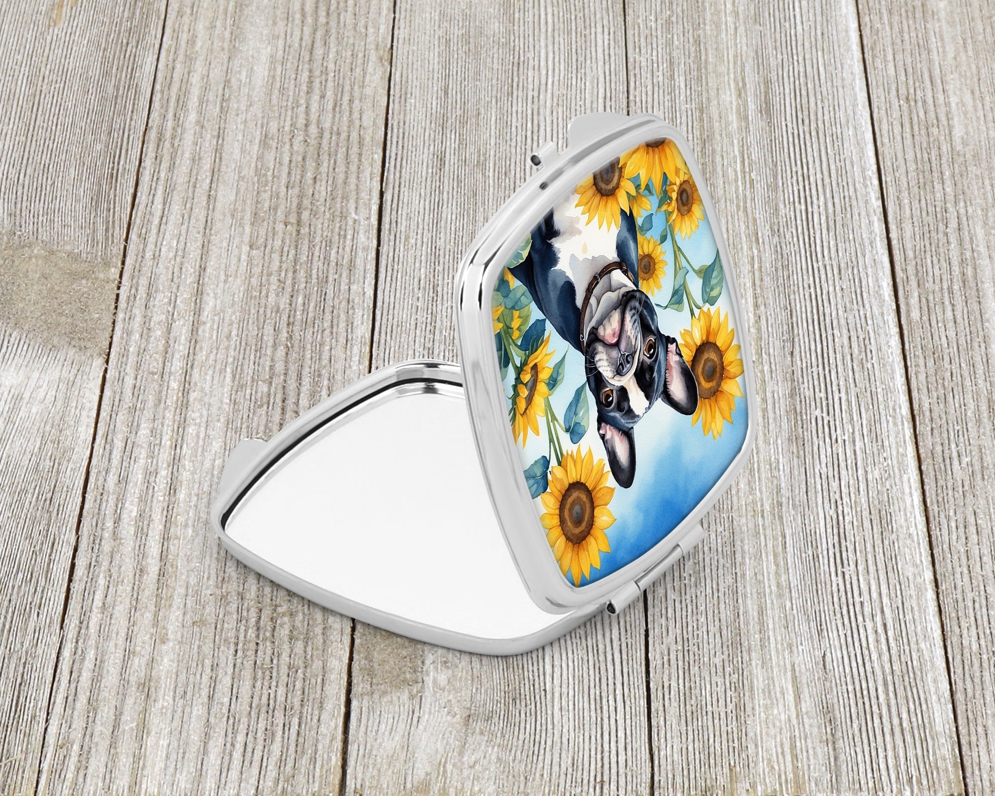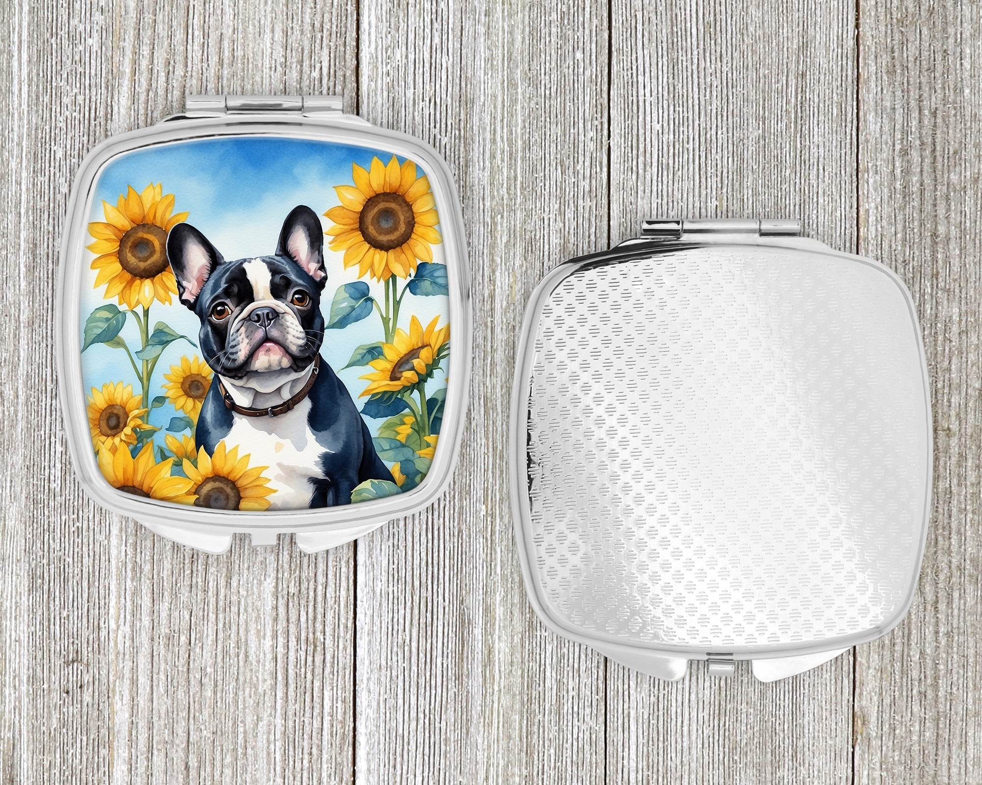 Compact Mirror featuring breed specific French Bulldog artwork. Introducing our Square Compact Mirror, a blend of elegance, functionality, and compactness, perfect for on-the-go touch-ups. This Silvertone metal mirror, with dimensions of 2.75 inches x 3 inches x .3 inches, fits effortlessly into your purse, handbag, or pocket, ensuring that you can check your appearance anytime, anywhere. Our compact mirror stands out with its eye-catching artwork on the front, adding a dash of style to this practical accessory. It is more than just a mirror; it's a statement piece that reflects your personality and aesthetic. When opened, this compact reveals two mirrors inside, doubling your perspective for precise touch-ups. The Silvertone metal construction ensures durability while maintaining a lightweight feel, making it an ideal everyday carry item. Whether you're rushing to a meeting, prepping for a dinner date, or just need a quick check on your look, our Square Compact Mirror is your reliable companion. Experience the perfect blend of style and practicality with this must-have accessory.