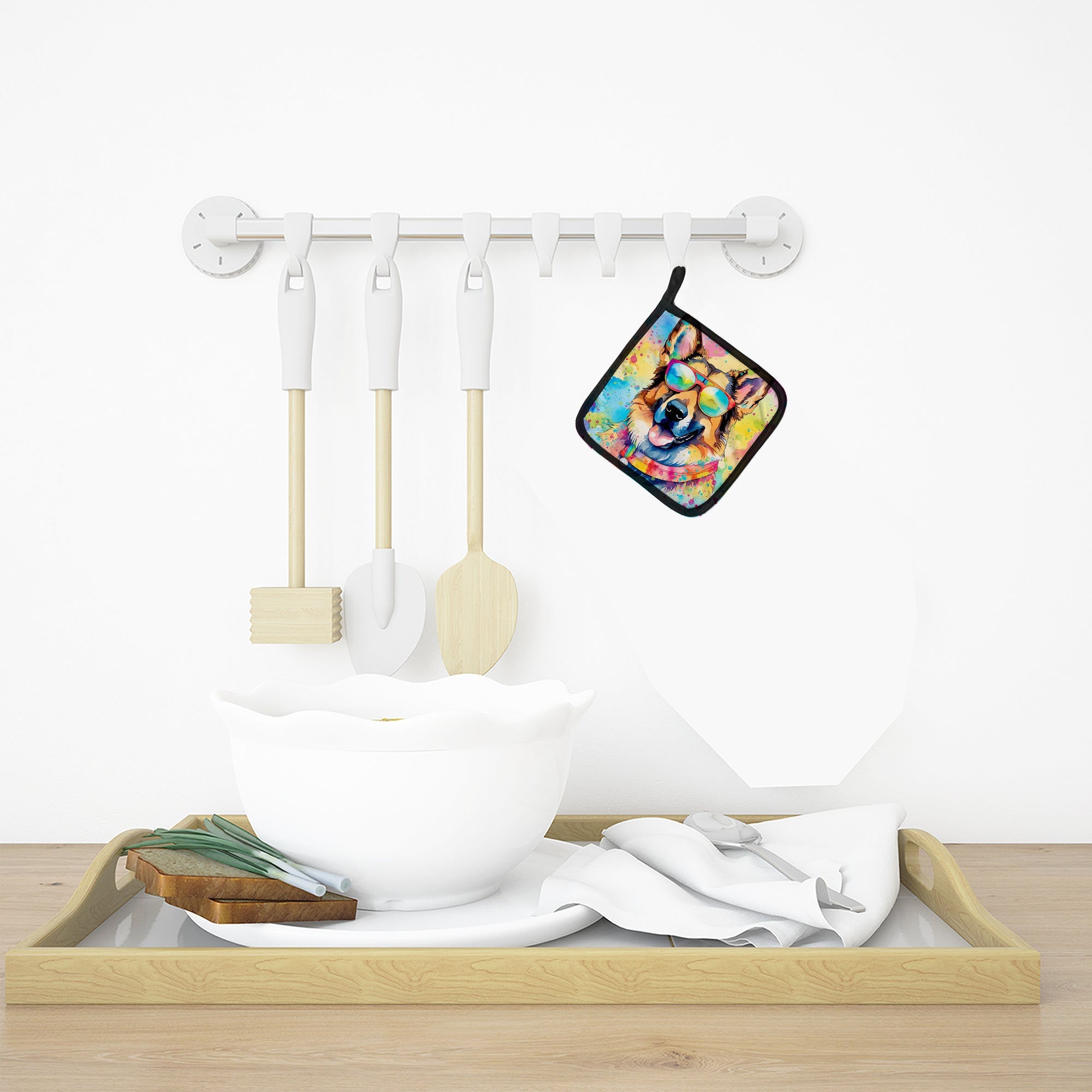 German Shepherd Hippie Dawg Pair of Pot Holders