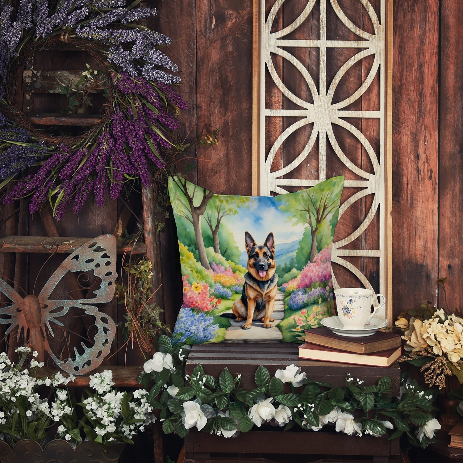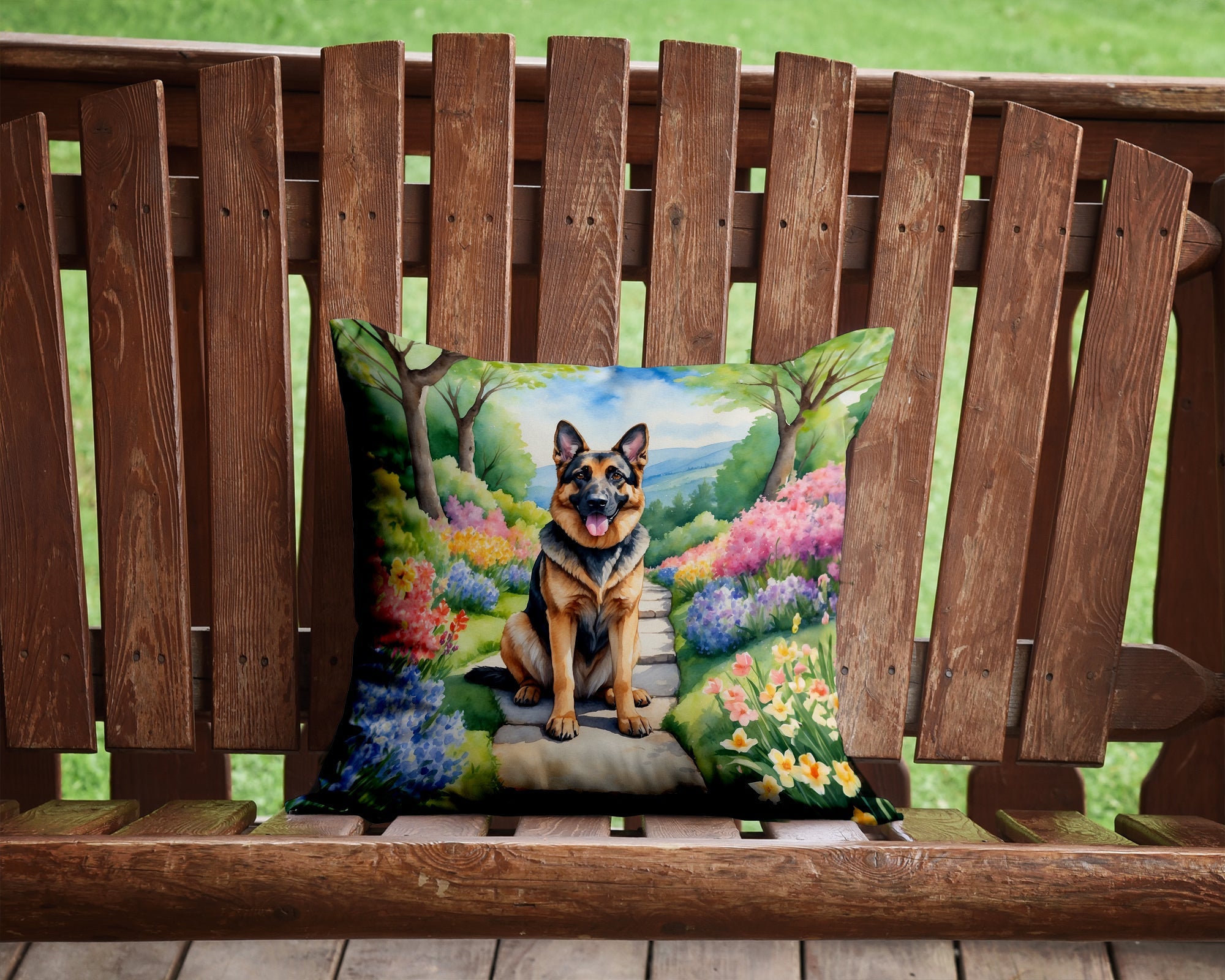 German Shepherd Spring Path Throw Pillow