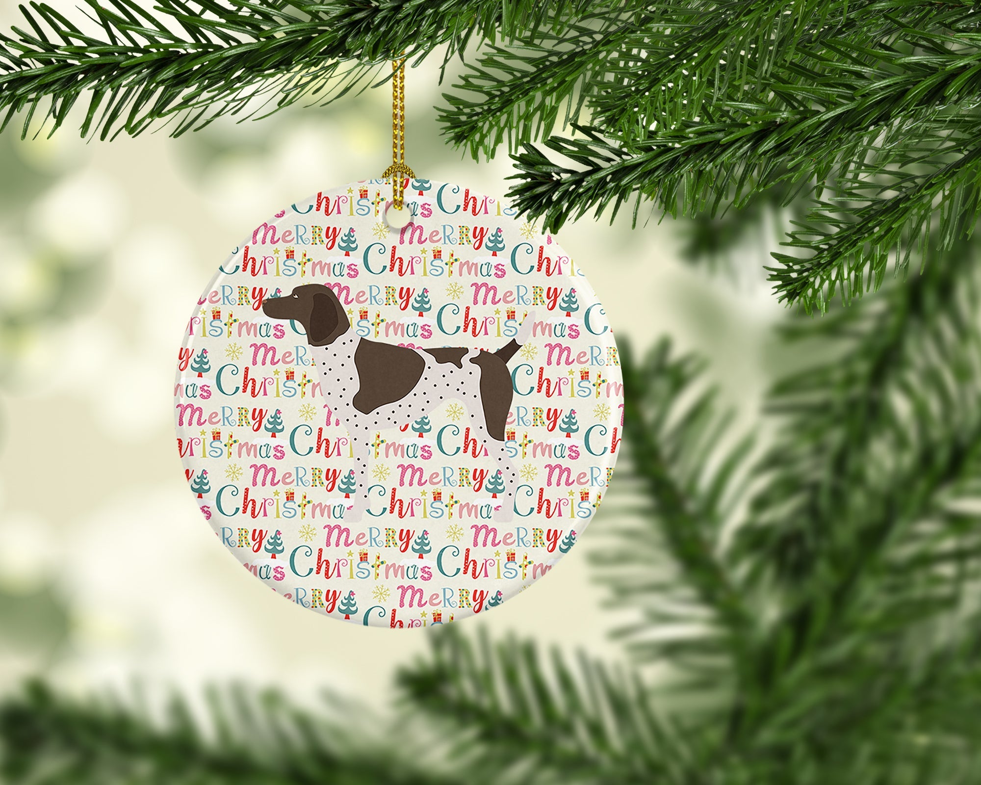German Shorthaired Pointer Merry Christmas Ceramic Ornament
