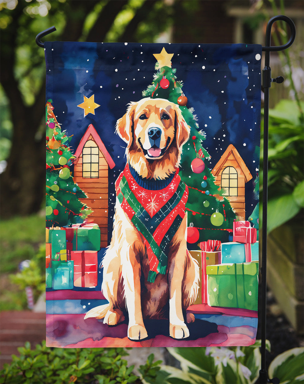Garden Flag featuring breed specific Golden Retriever artwork. Celebrate Christmas with this Christmas Garden Flag. Enhance the beauty of your garden, patio, or yard with Caroline's Treasures Decorative Garden Flag, proudly made in the USA. Crafted from two pieces of thick, double-sided polyester fabric, this 2-ply garden flag is designed to withstand various weather conditions, making it water-resistant and weatherproof. Featuring correctly readable words on both sides, this garden flag offers a delightful visual experience from any angle. With its heavier weight, it stands out among other garden flags, ensuring stability and durability even in wind, rain, and snow. Measuring approximately 11 1/4 inches by 15 1/2 inches, this flag allows you to personalize your outdoor decor. It comes with a 1 1/2-inch sleeve sewn in, allowing easy attachment to any standard garden flag stand or garden size porch hanger (sold separately). Make a statement in your outdoor space with Caroline's Treasures Decorative Garden Flag, a vibrant and high-quality flag that adds color and personality to your surroundings. Proudly made in the USA, it's a symbol of quality craftsmanship and attention to detail.