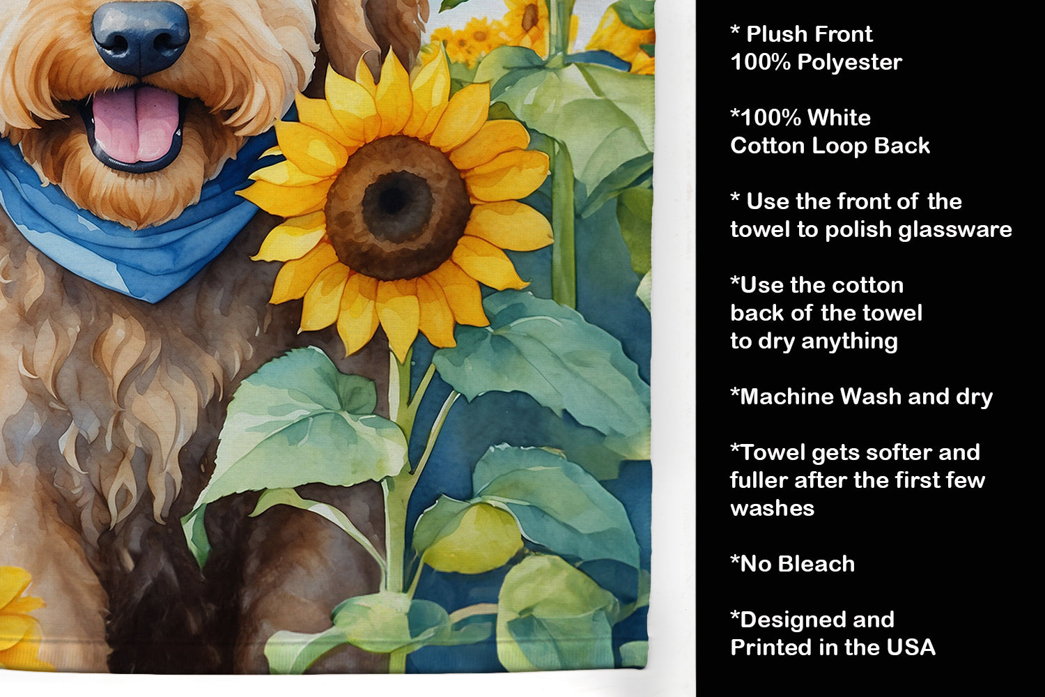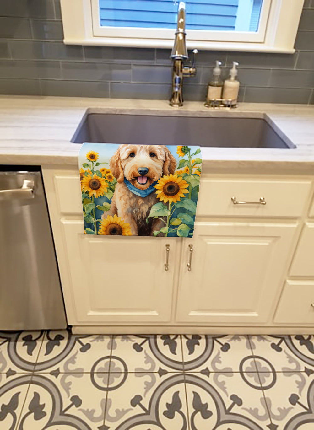 Goldendoodle in Sunflowers Kitchen Towel