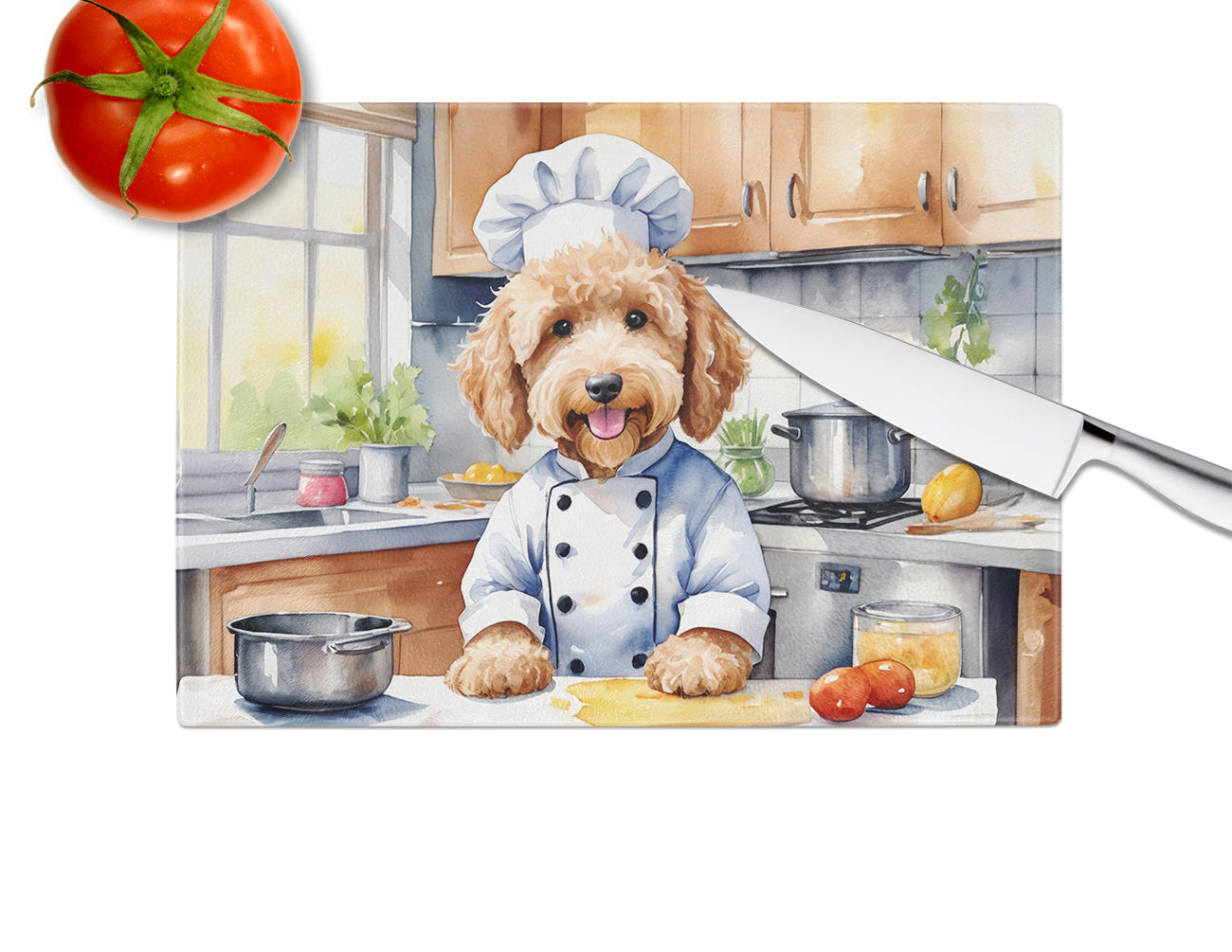Goldendoodle the Chef Glass Cutting Board