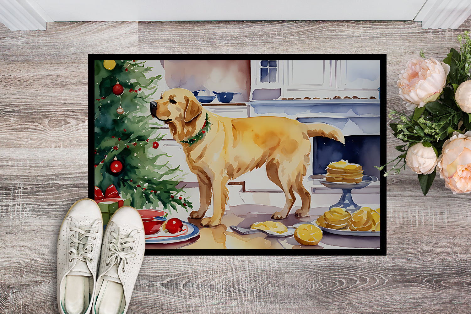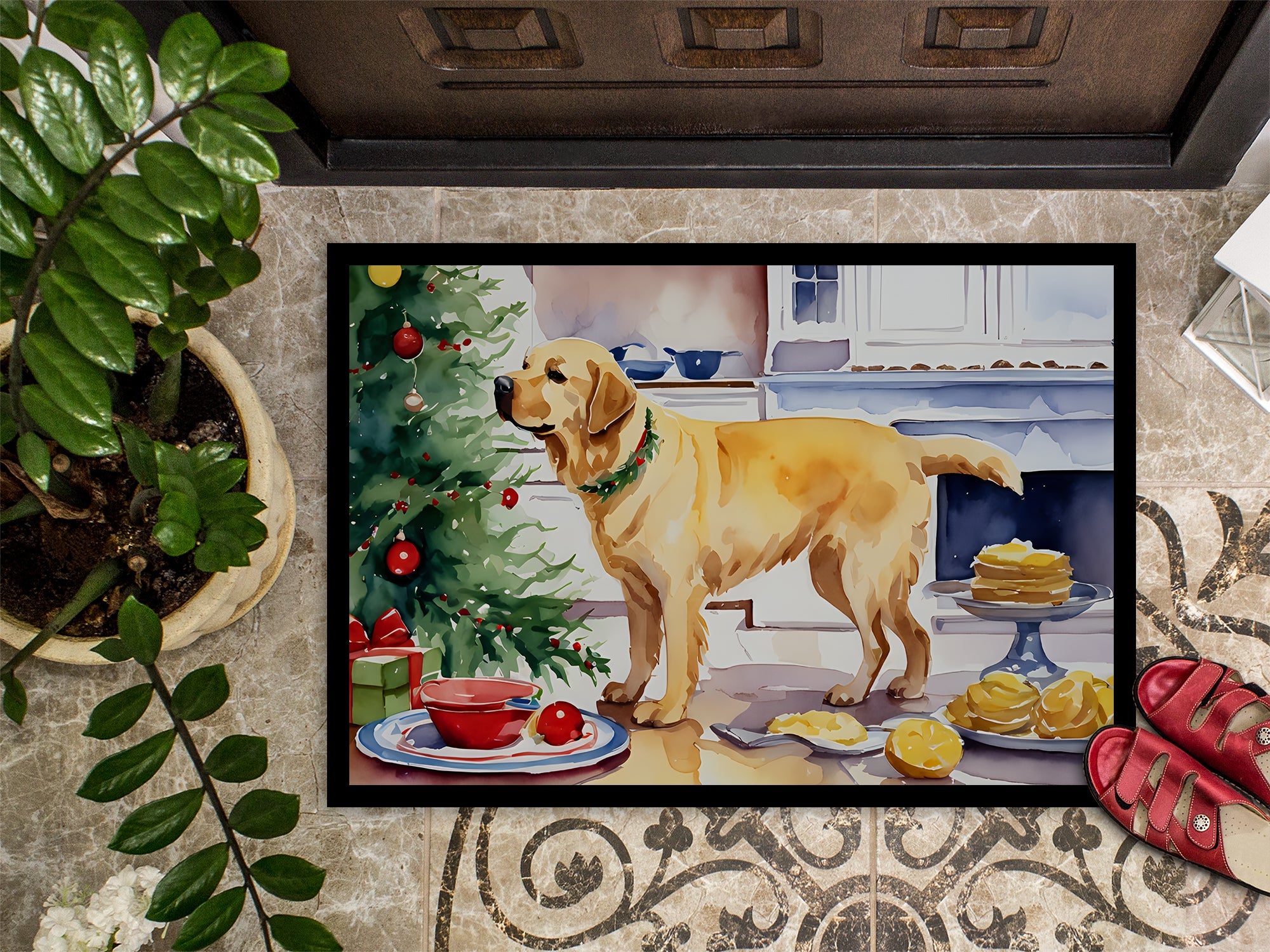 Doormat featuring breed specific Labrador Retriever artwork. Celebrate Christmas with this Christmas Doormat. Welcome your guests in style with our Artwork Door Mat, designed to withstand almost any weather condition. This mat, measuring approximately 18 by 27 inches, is held together by durable black binding tape. Its top layer, composed of polyester felt, is dyed with the eye-catching image you see on the mat. A few layers below provide the mat with stability, while its rubber bottom is stamped to help prevent slipping and ensures safety. Our mat works wonderfully as both an indoor or outdoor door mat. For cleaning, simply hose it off with water or use a power washer - no need for any cleaner that produces suds. Avoid scrubbing with a brush, instead, opt for the vacuum on floor setting. Designed manufactured and printed in the USA, this mat is a perfect addition to your porch, outdoor kitchen, entryway, or any indoor space. Its unique design makes it a charming decorative rug that greets your guests and adds a stylish touch to your home decor.