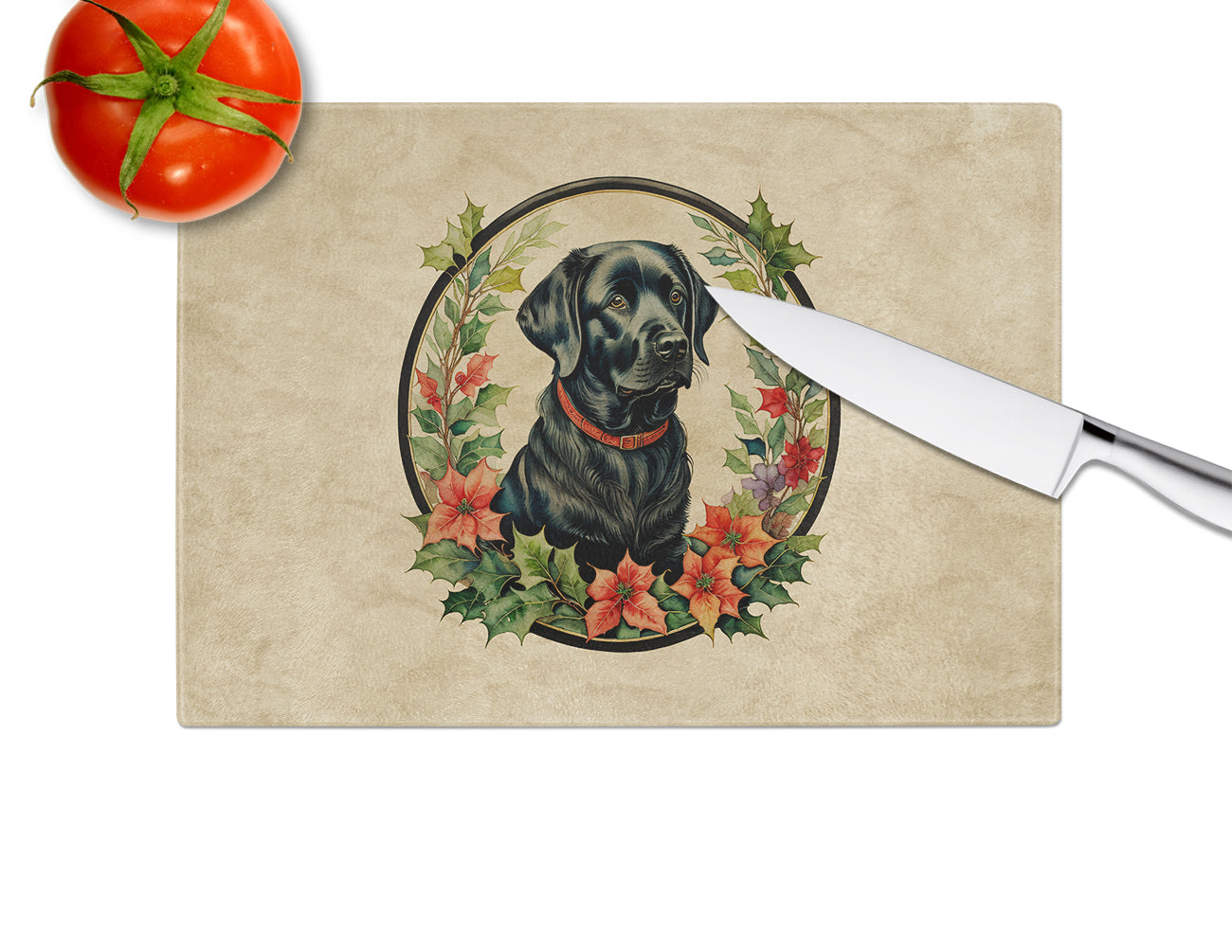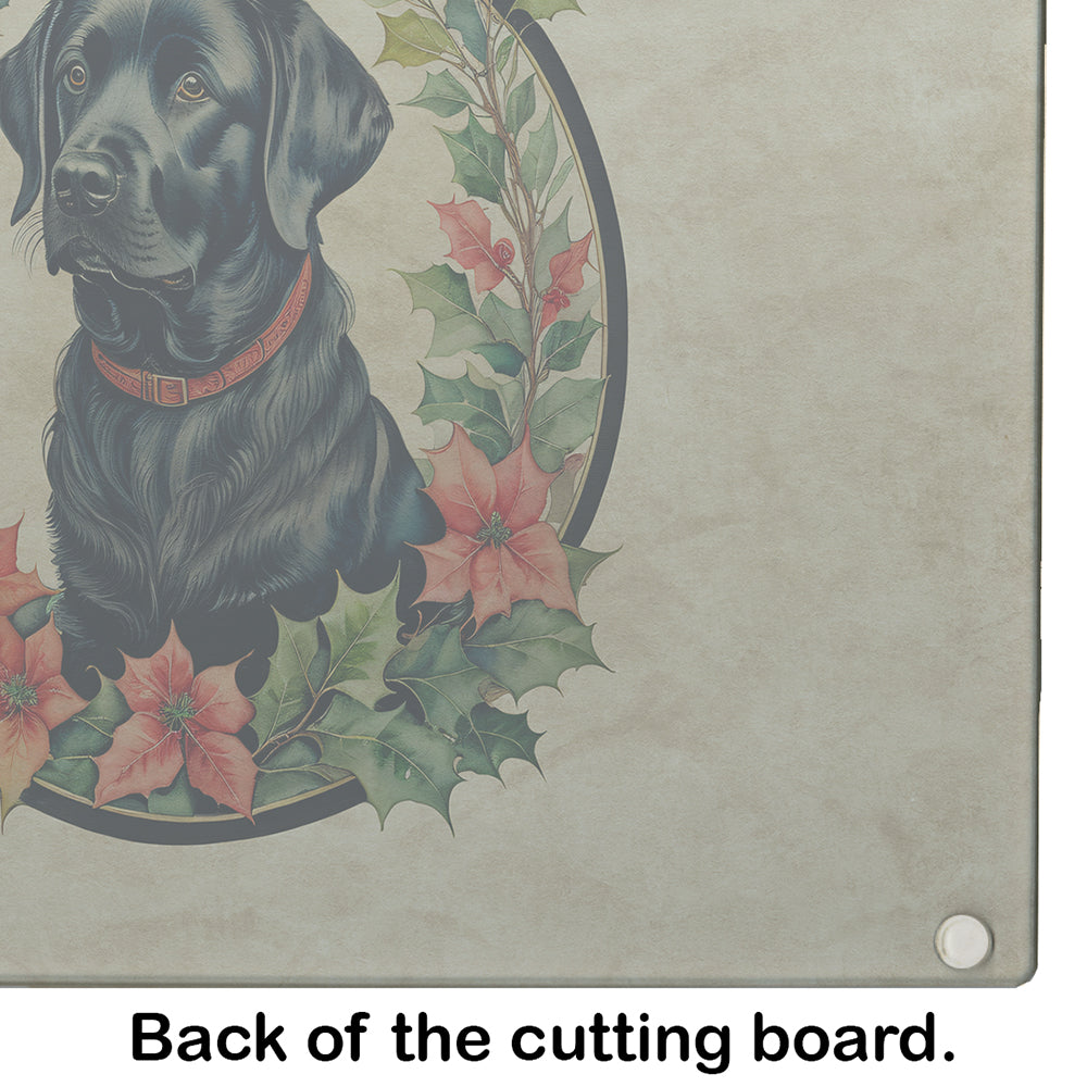 Labrador Retriever Christmas Flowers Glass Cutting Board