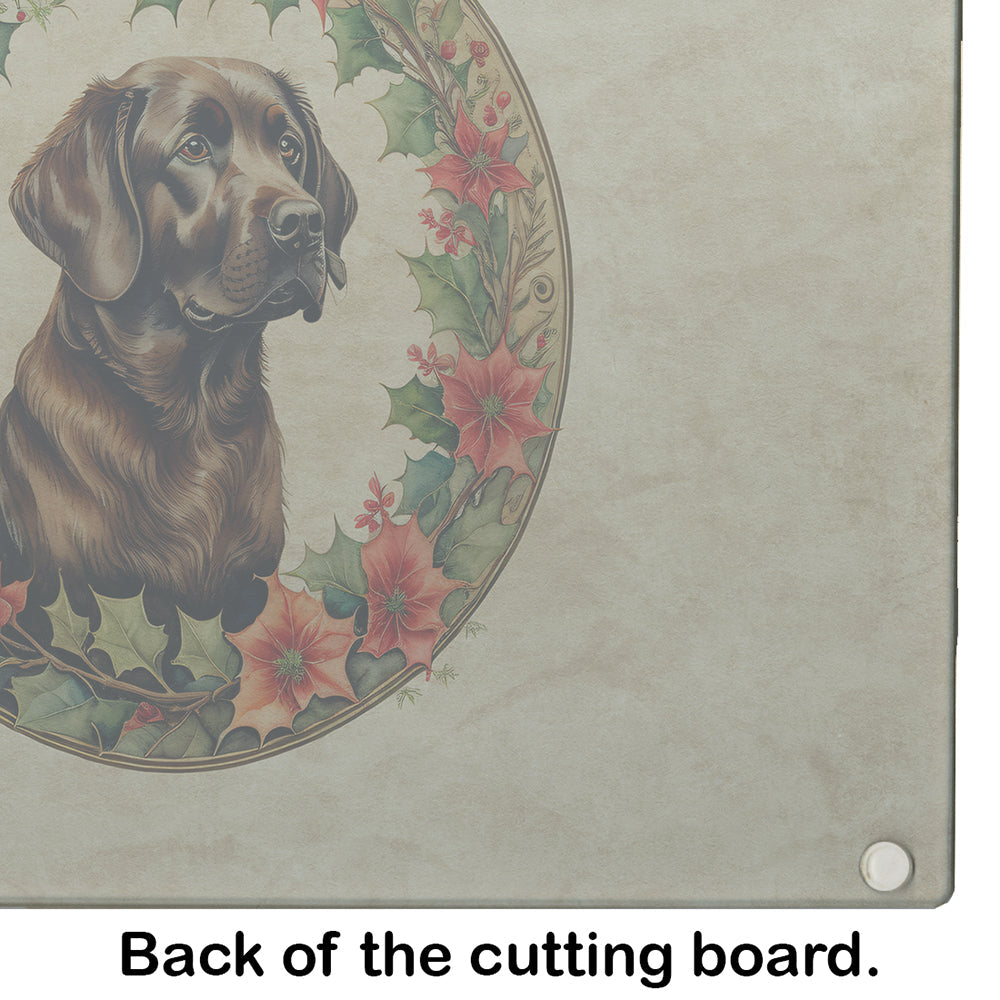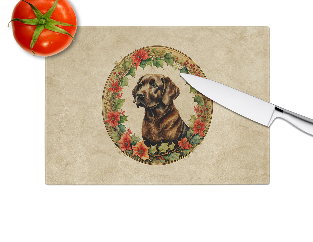 Labrador Retriever Christmas Flowers Glass Cutting Board