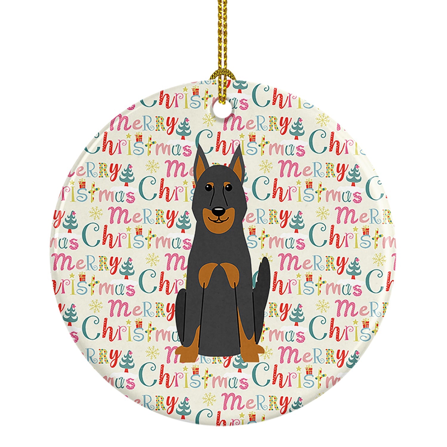 Merry Christmas Beauce Shepherd Dog Ceramic Ornament