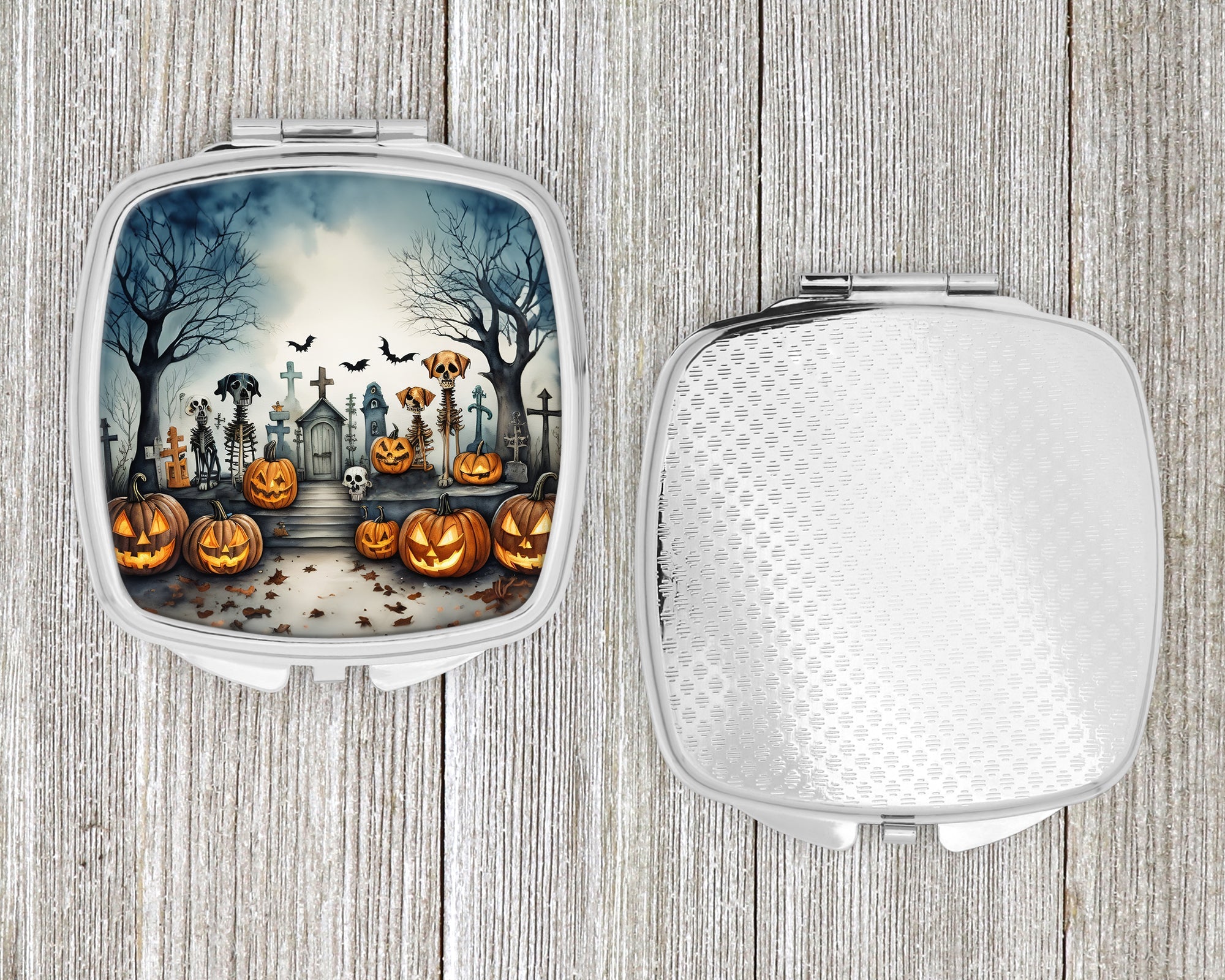 Celebrate Halloween with this Halloween Compact Mirror. Introducing our Square Compact Mirror, a blend of elegance, functionality, and compactness, perfect for on-the-go touch-ups. This Silvertone metal mirror, with dimensions of 2.75 inches x 3 inches x .3 inches, fits effortlessly into your purse, handbag, or pocket, ensuring that you can check your appearance anytime, anywhere. Our compact mirror stands out with its eye-catching artwork on the front, adding a dash of style to this practical accessory. It is more than just a mirror; it's a statement piece that reflects your personality and aesthetic. When opened, this compact reveals two mirrors inside, doubling your perspective for precise touch-ups. The Silvertone metal construction ensures durability while maintaining a lightweight feel, making it an ideal everyday carry item. Whether you're rushing to a meeting, prepping for a dinner date, or just need a quick check on your look, our Square Compact Mirror is your reliable companion. Experience the perfect blend of style and practicality with this must-have accessory.