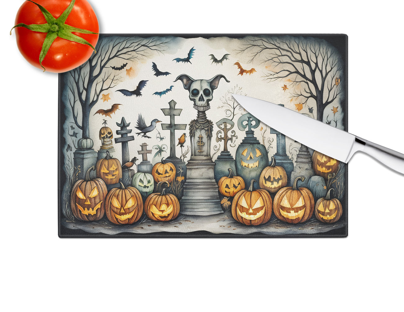 Pet Cemetery Spooky Halloween Glass Cutting Board
