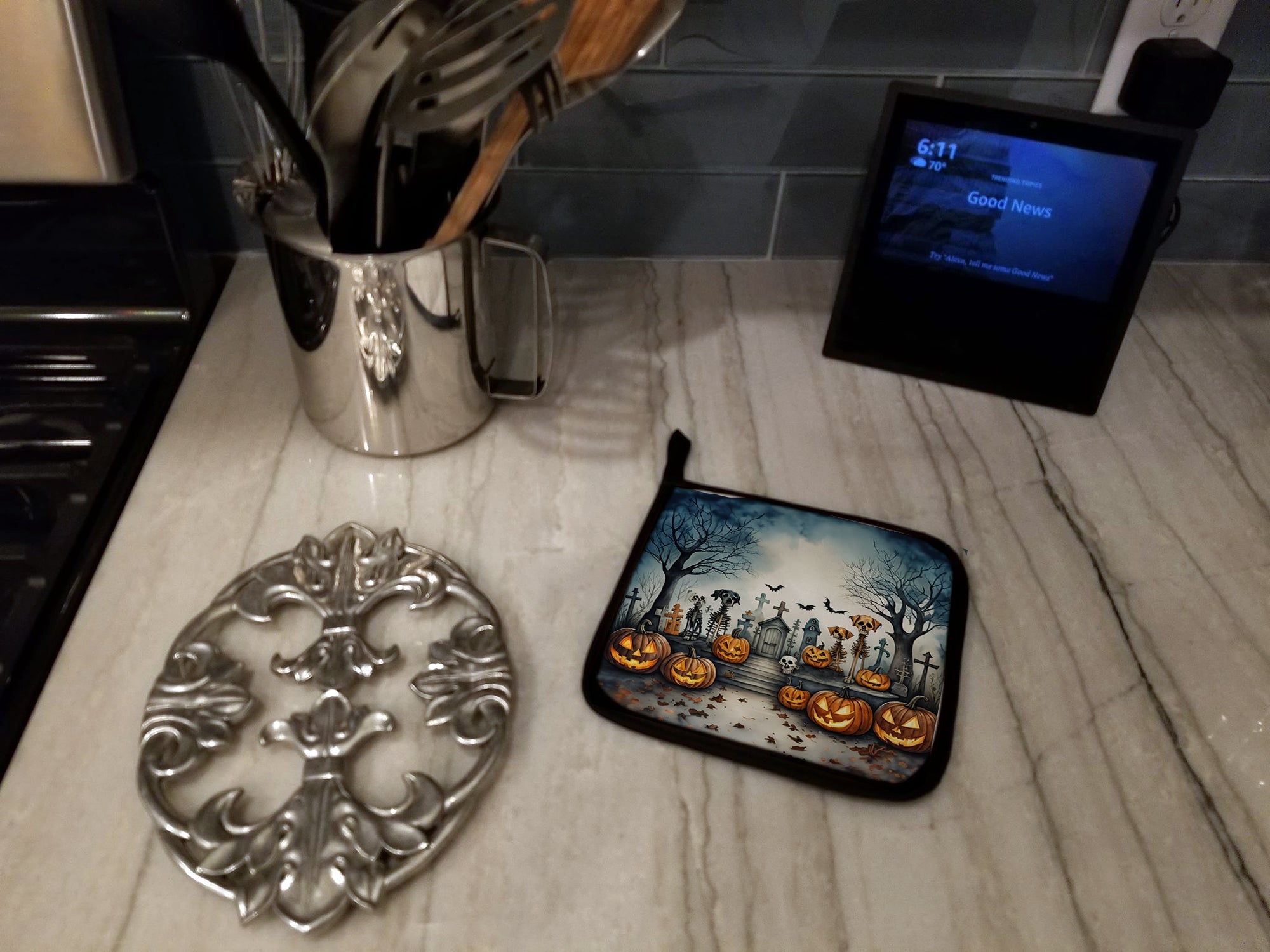 Pet Cemetery Spooky Halloween Pair of Pot Holders