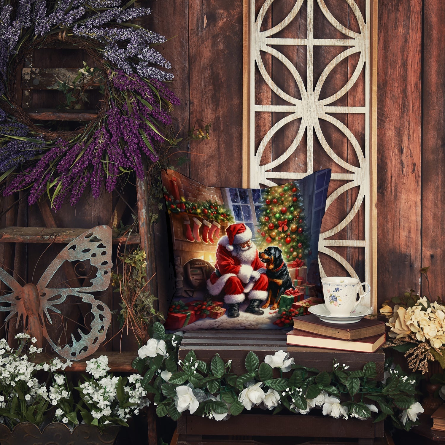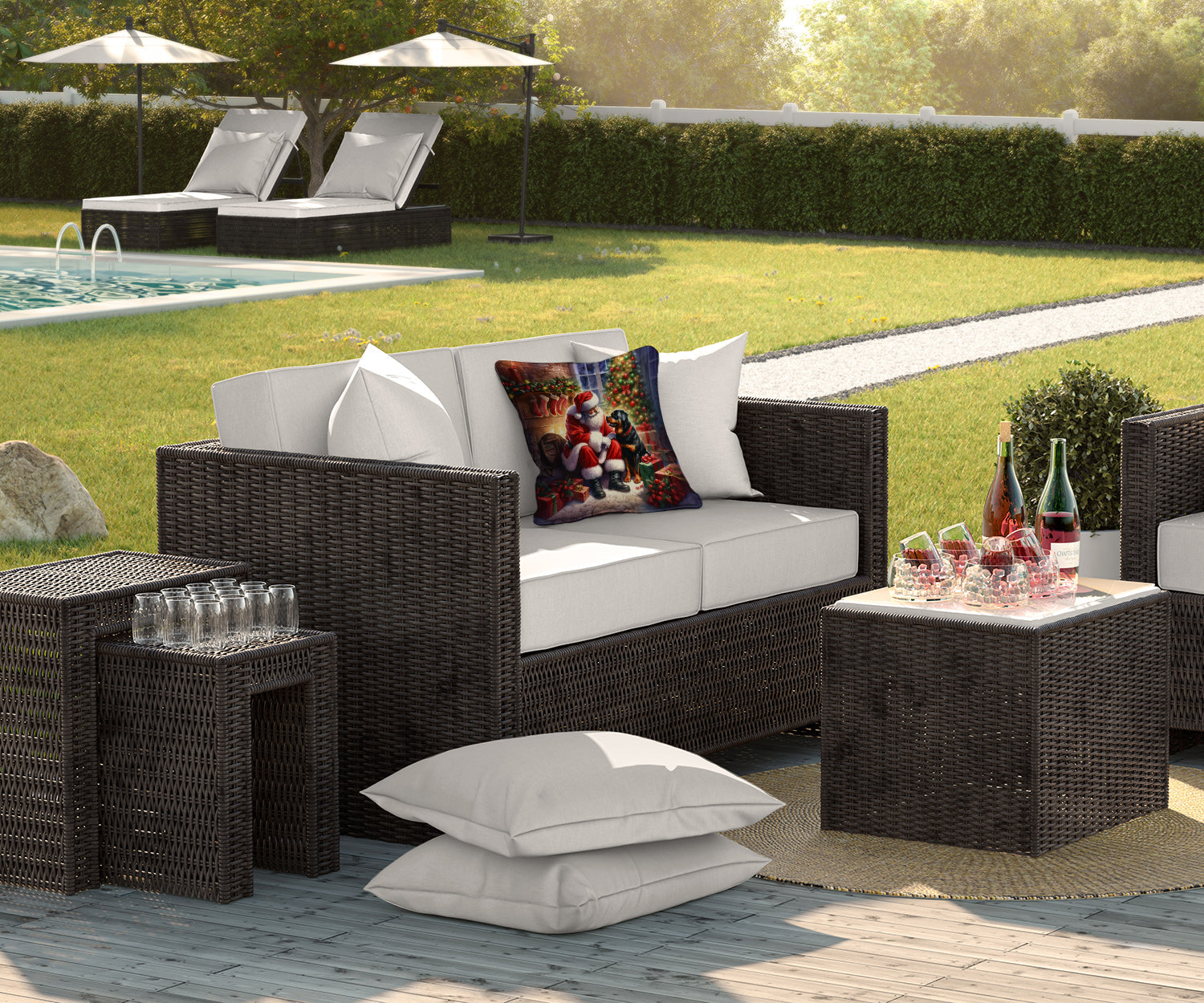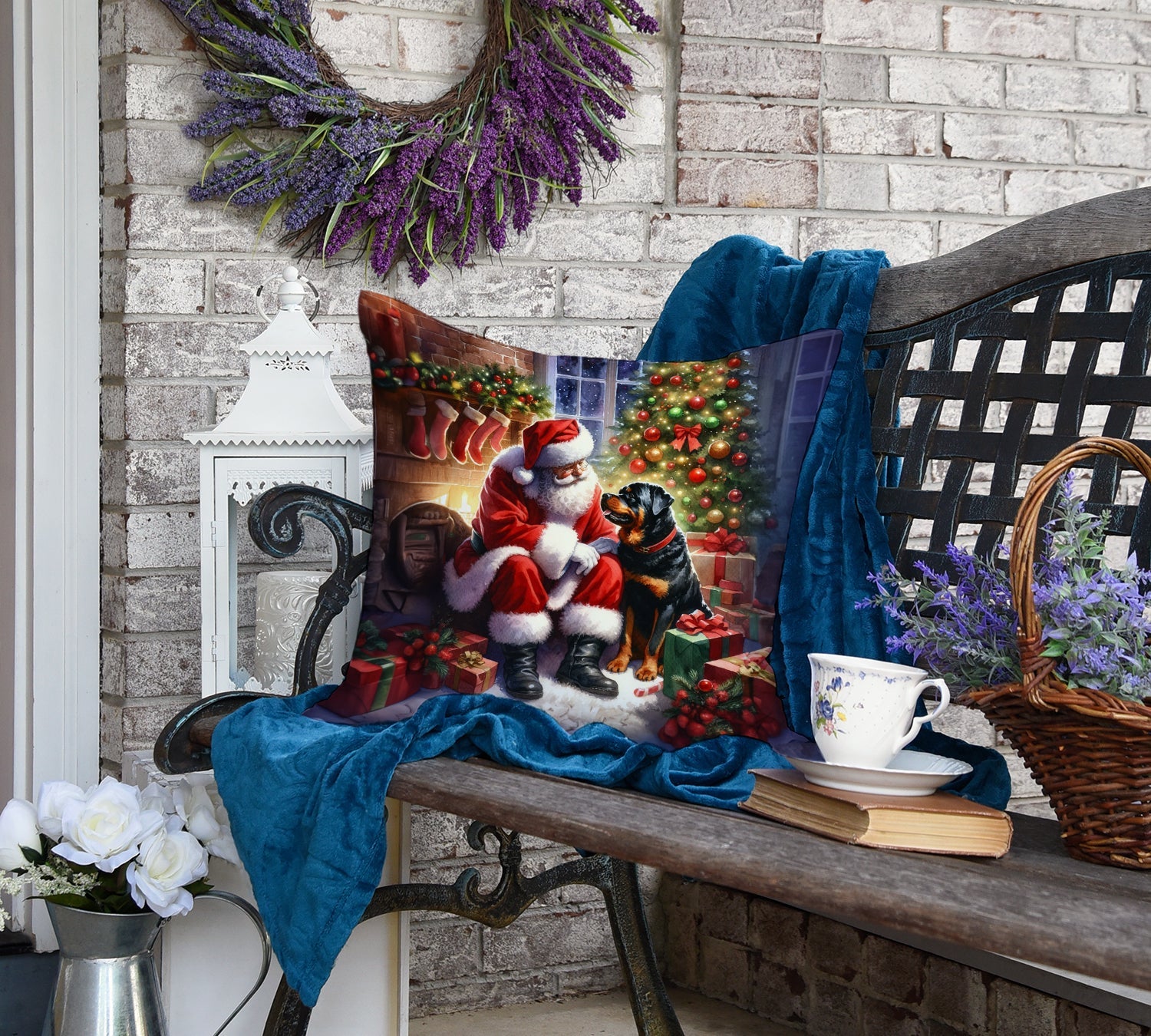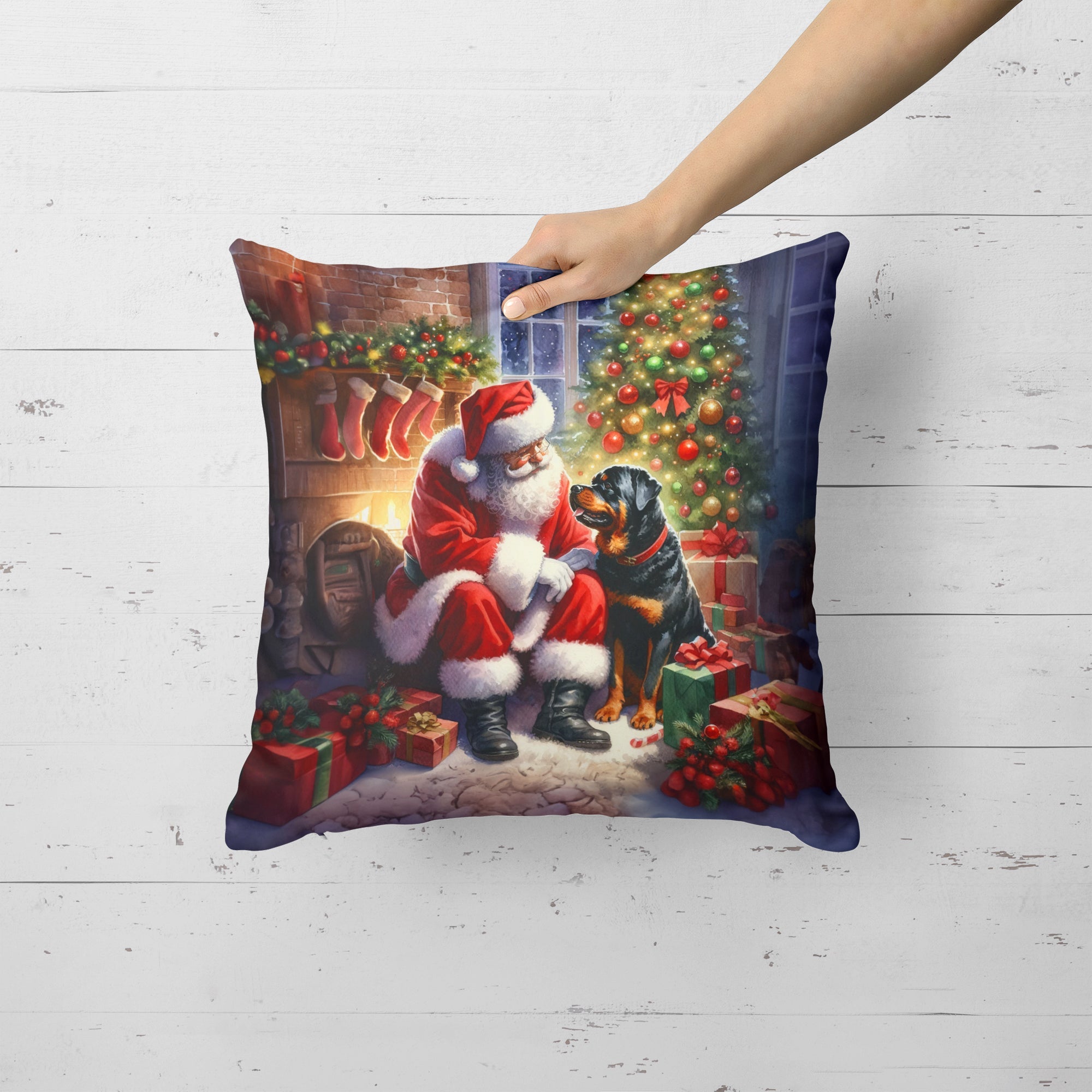 Rottweiler and Santa Claus Throw Pillow