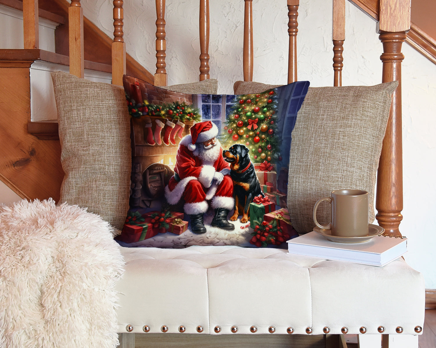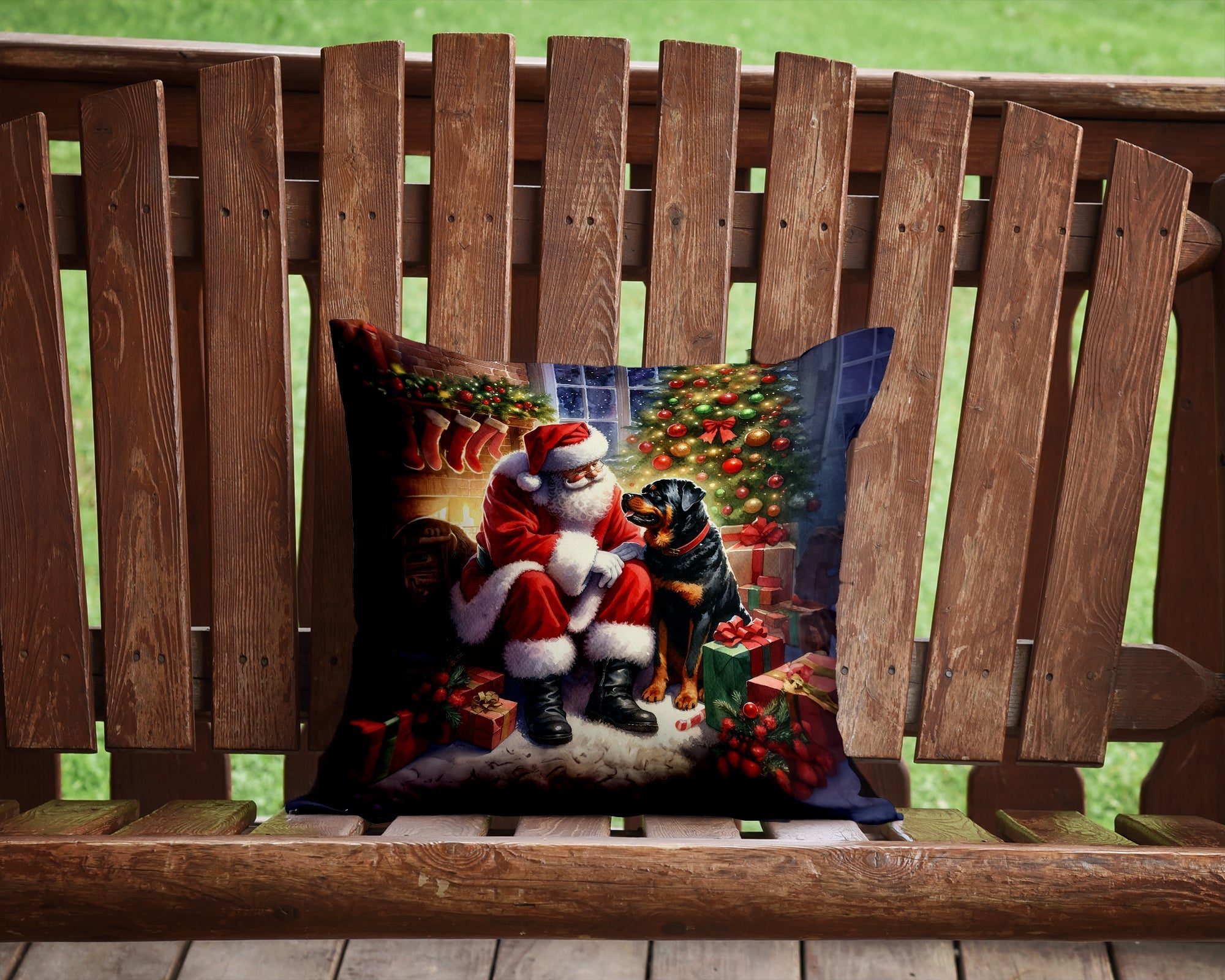 Rottweiler and Santa Claus Throw Pillow