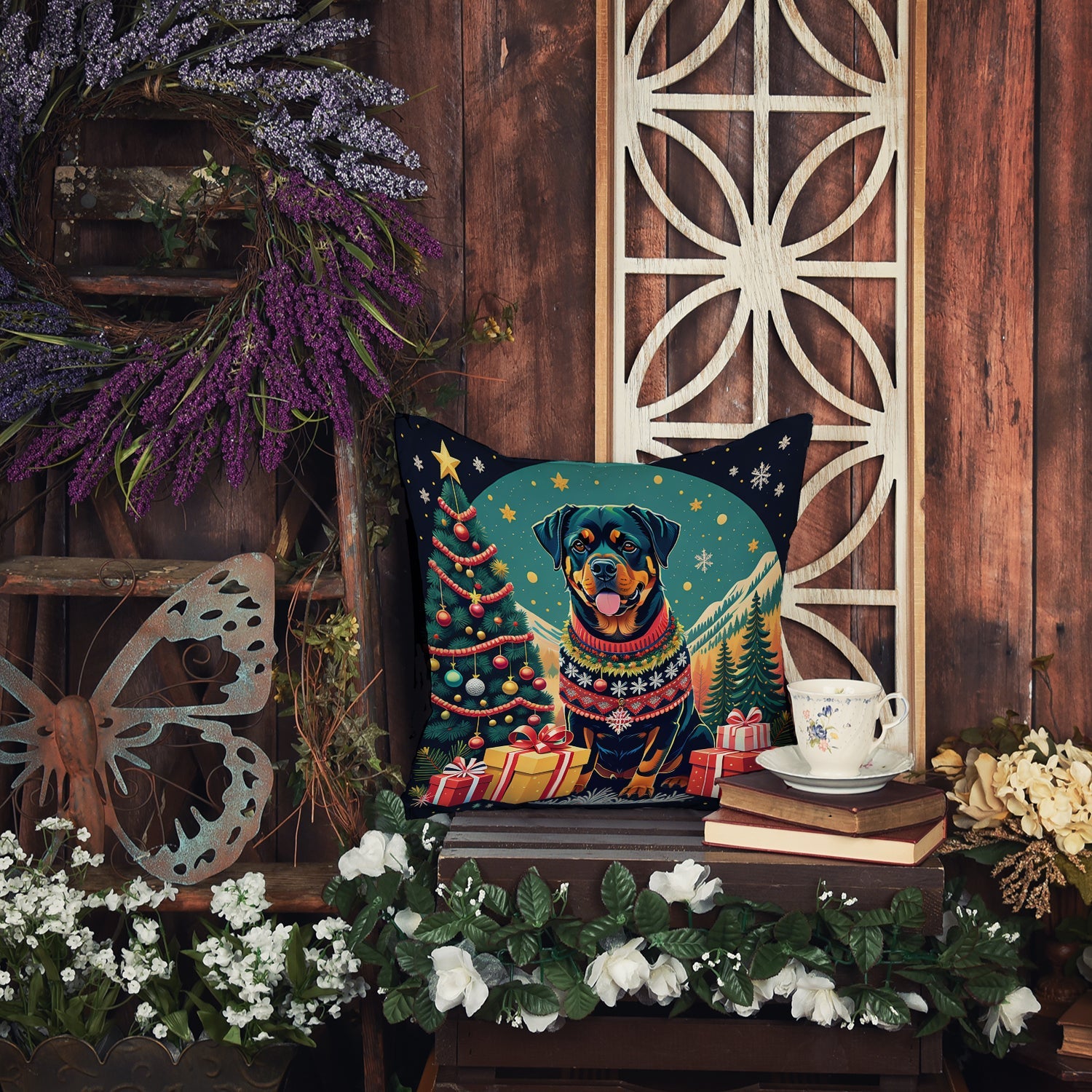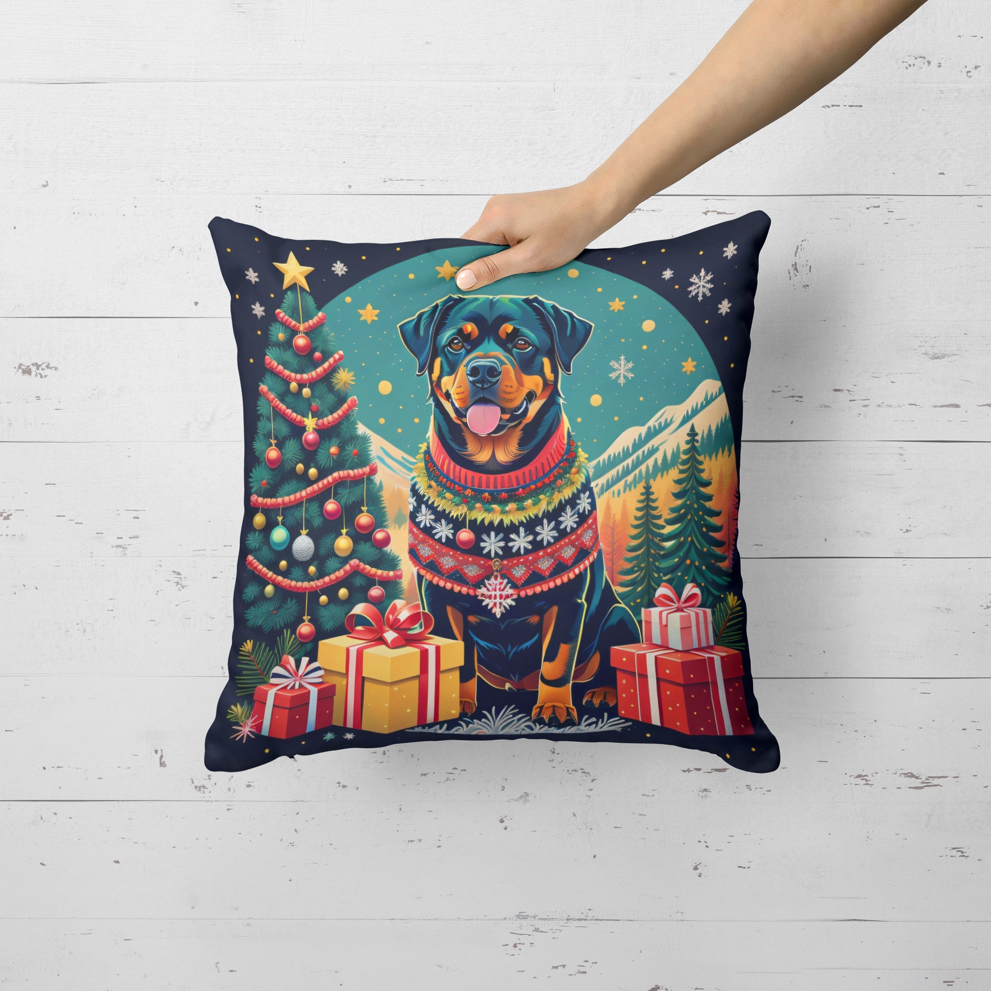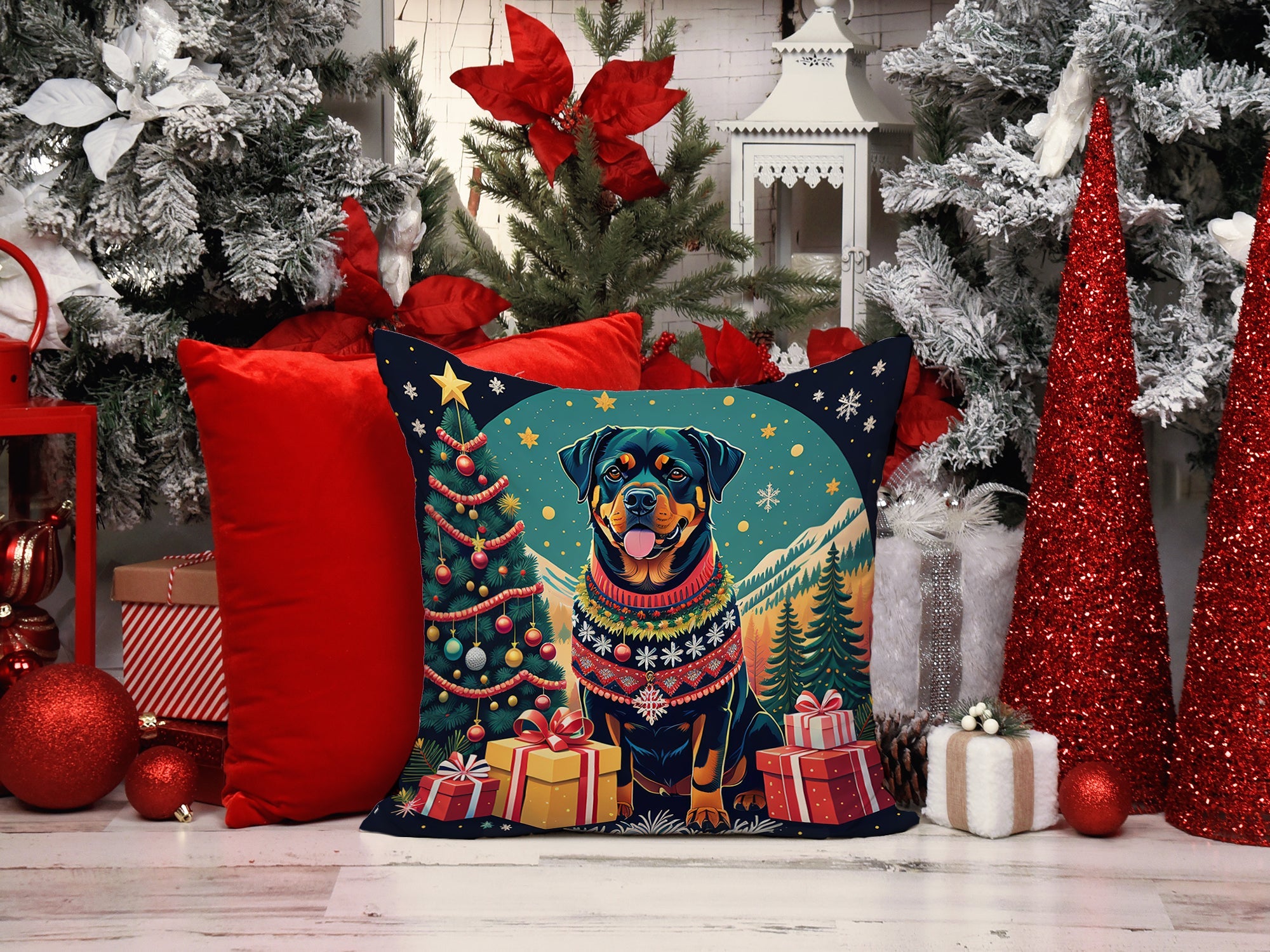 Rottweiler Christmas Throw Pillow