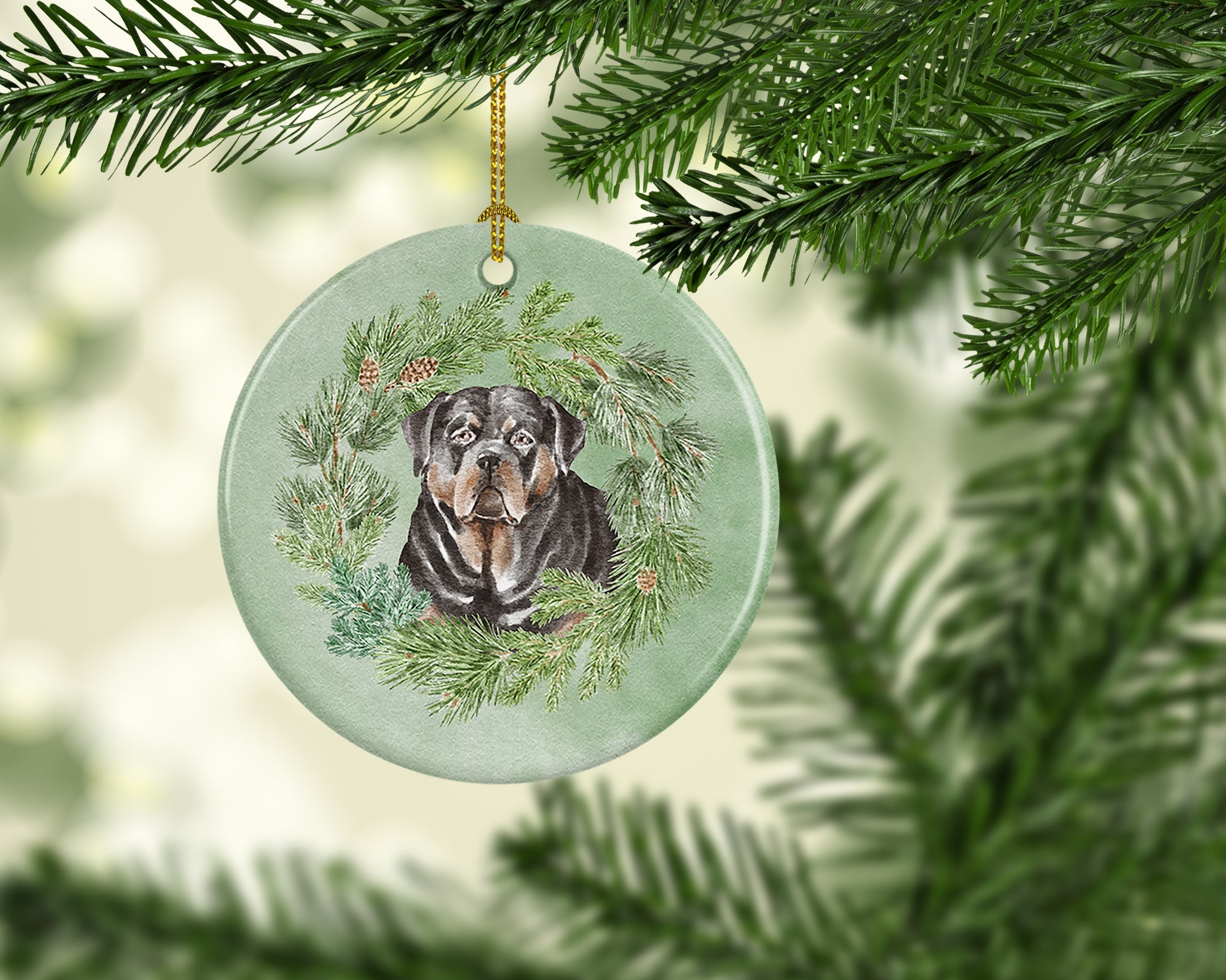 Rottweiler Christmas Wreath Ceramic Ornament