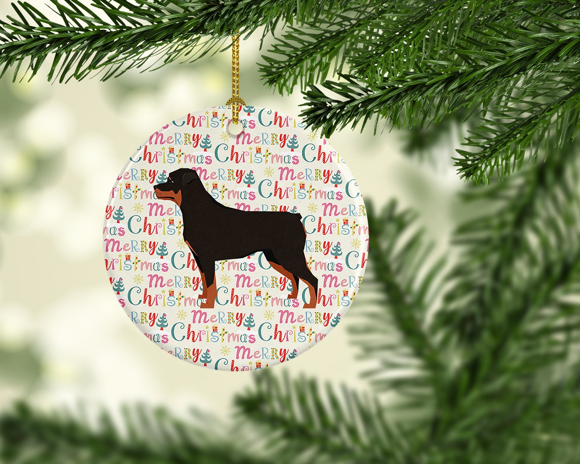 Rottweiler Merry Christmas Ceramic Ornament
