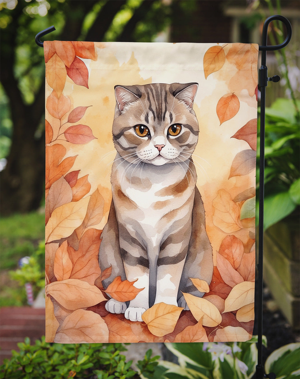 Scottish Fold Cat in Fall Leaves Garden Flag