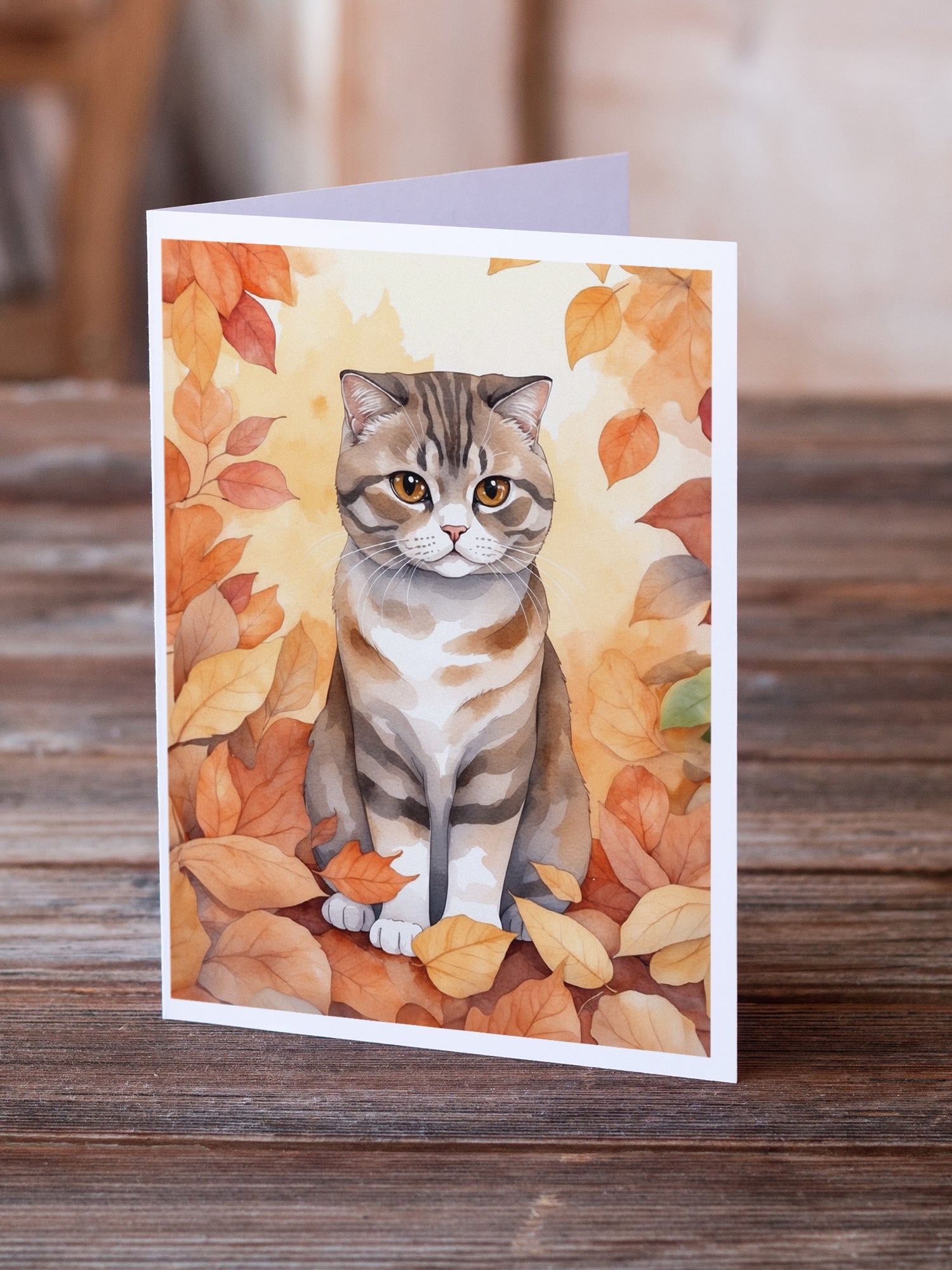 Scottish Fold Cat in Fall Leaves Greeting Cards Pack of 8