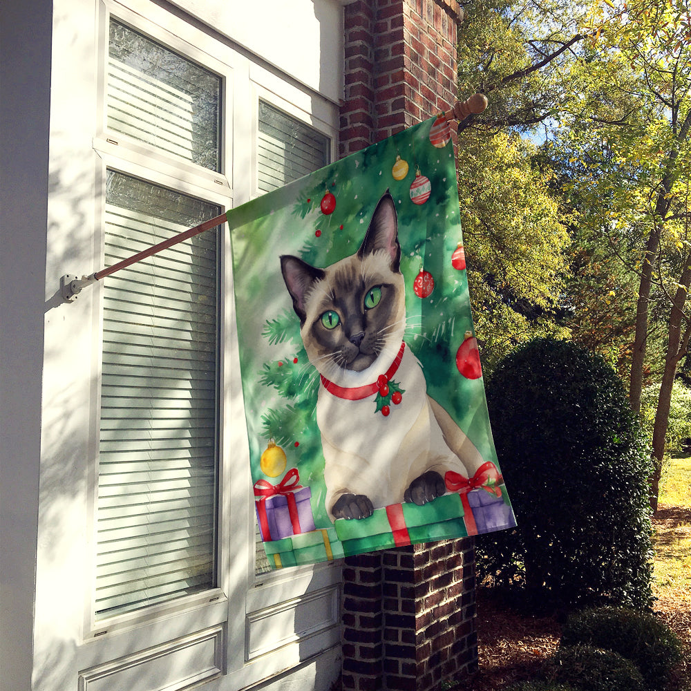 Siamese Cat by the Christmas Tree House Flag