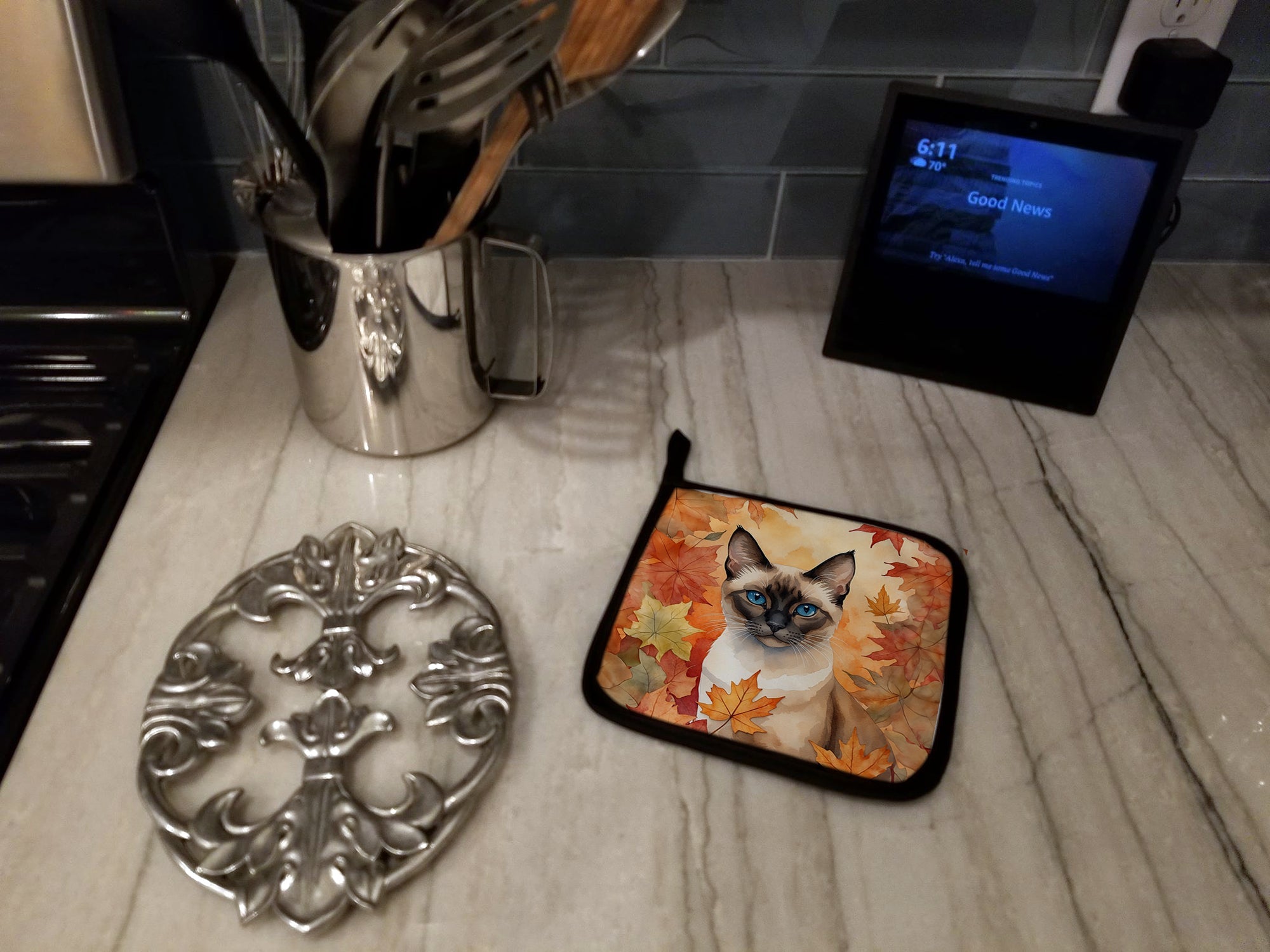 Siamese Cat in Fall Leaves Pair of Pot Holders