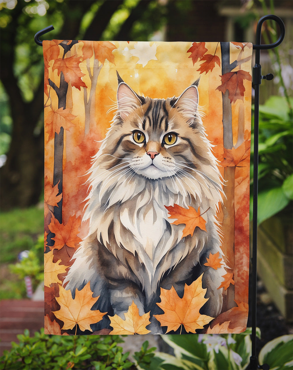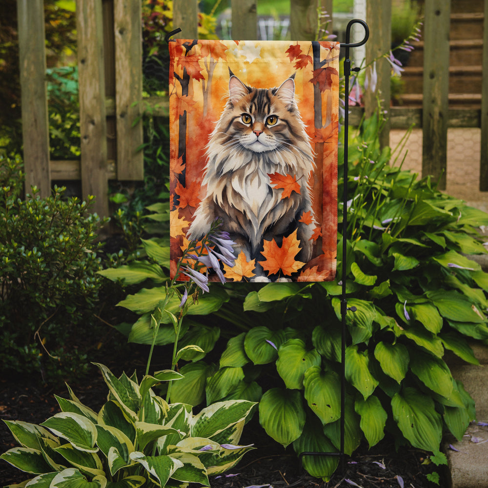 Siberian Cat in Fall Leaves Garden Flag