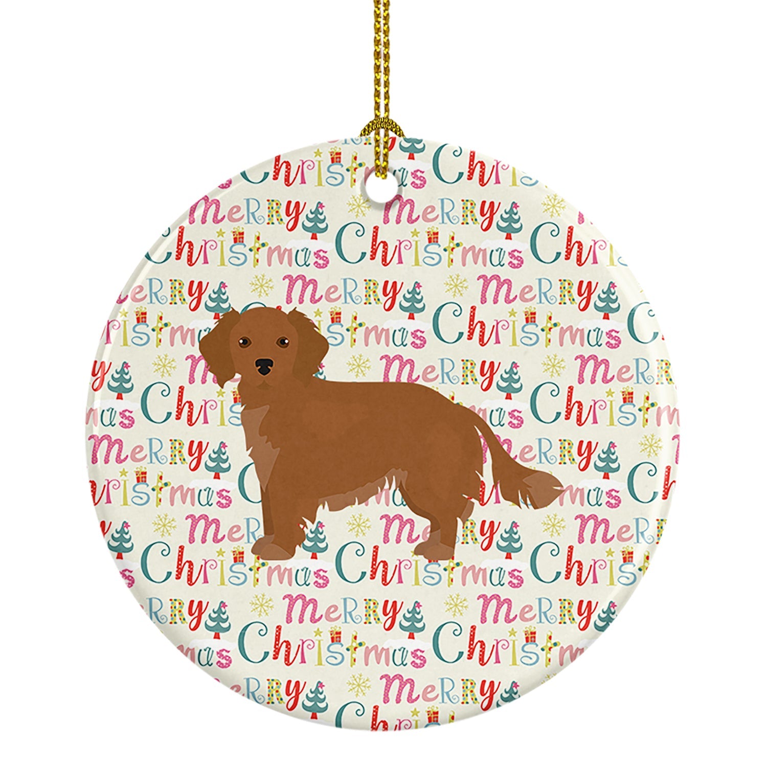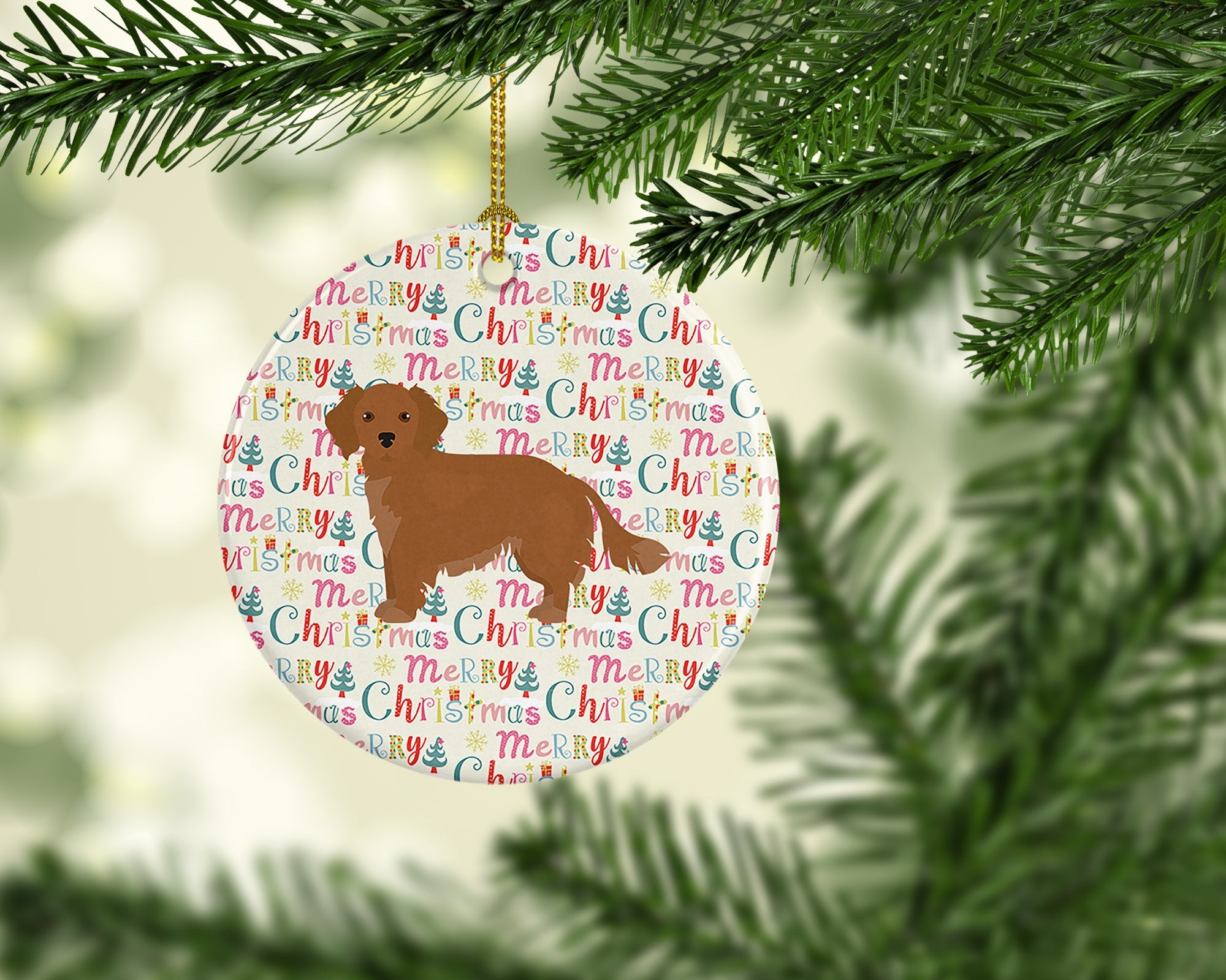 Small Greek Domestic Dog Merry Christmas Ceramic Ornament