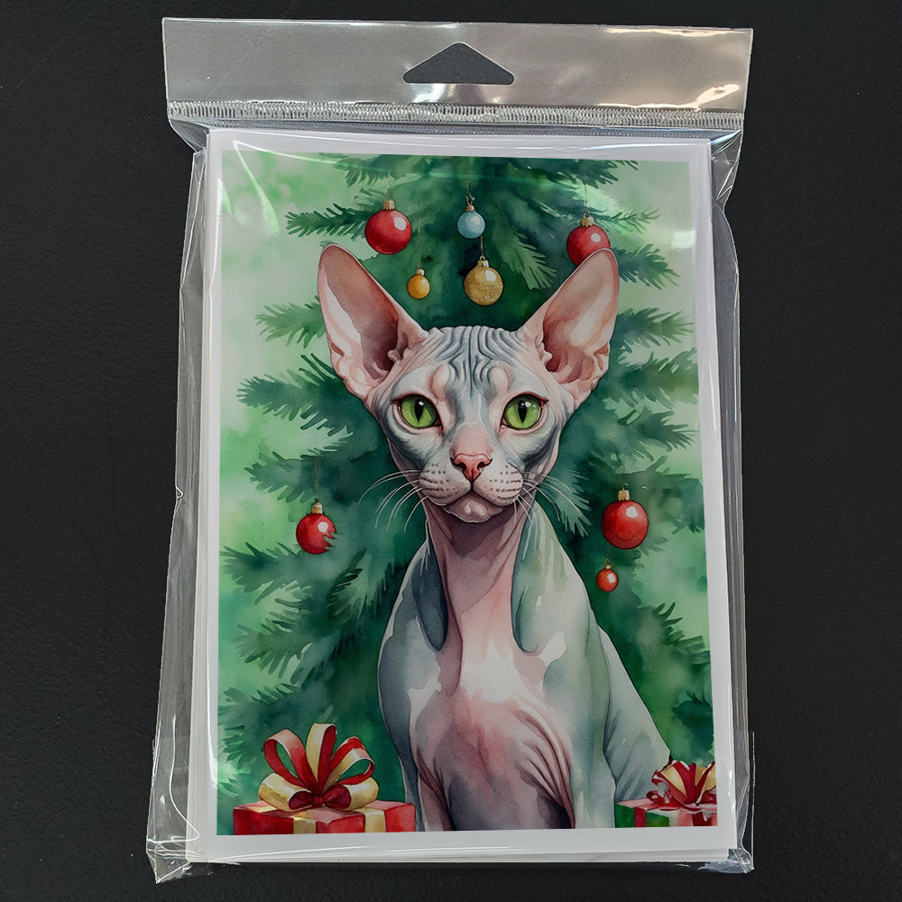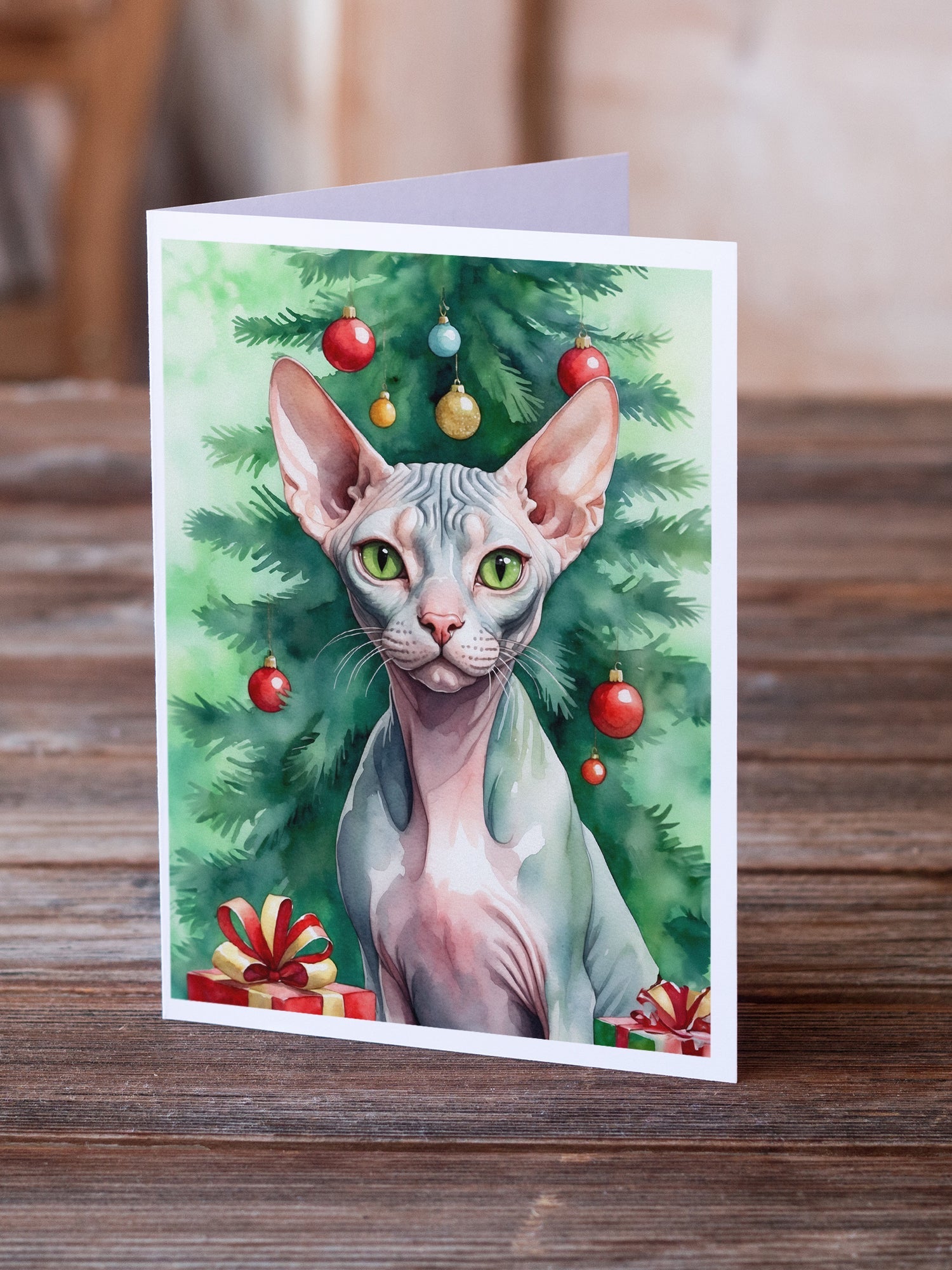 Sphynx Cat by the Christmas Tree Greeting Cards Pack of 8