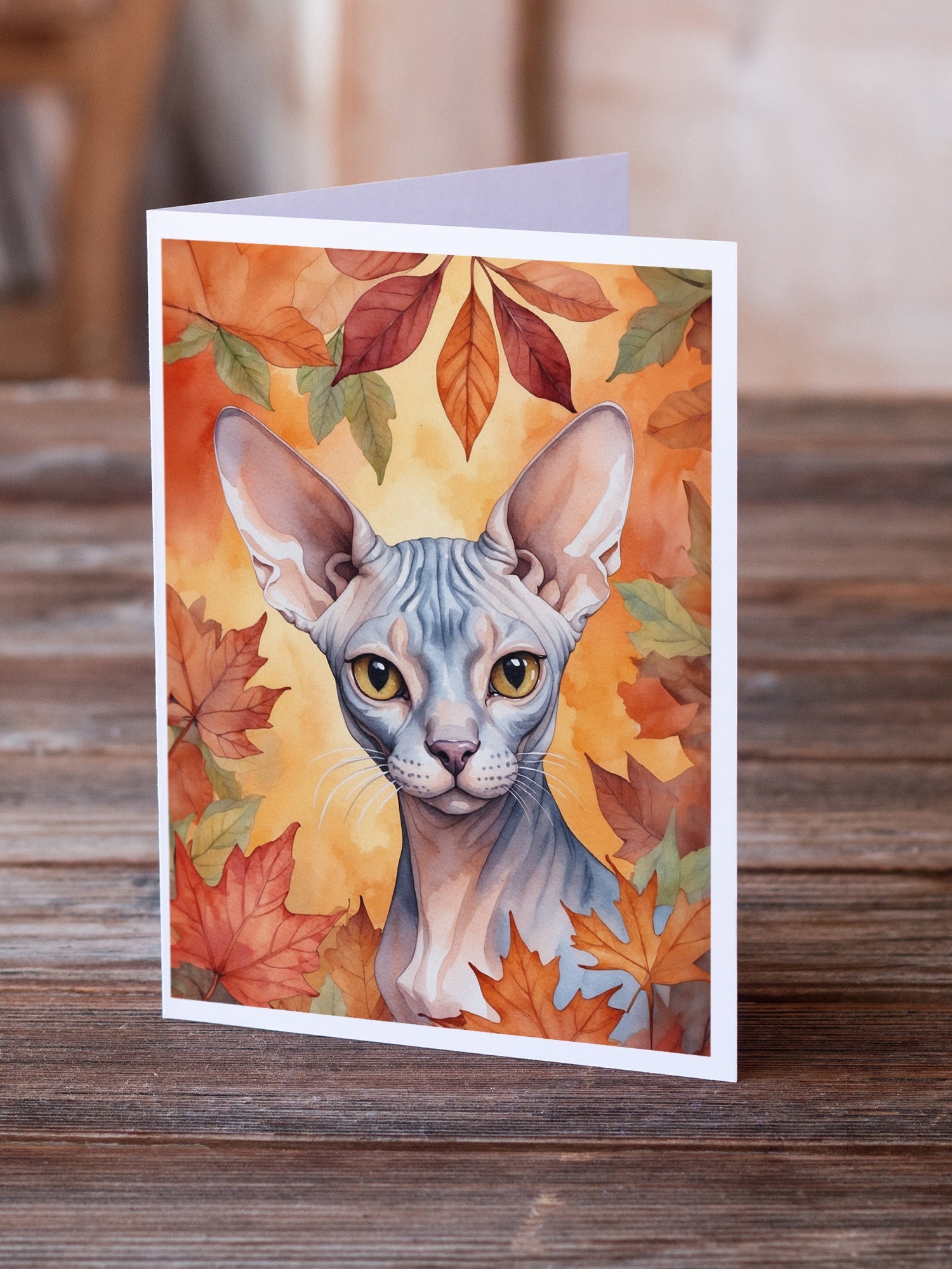 Sphynx Cat in Fall Leaves Greeting Cards Pack of 8