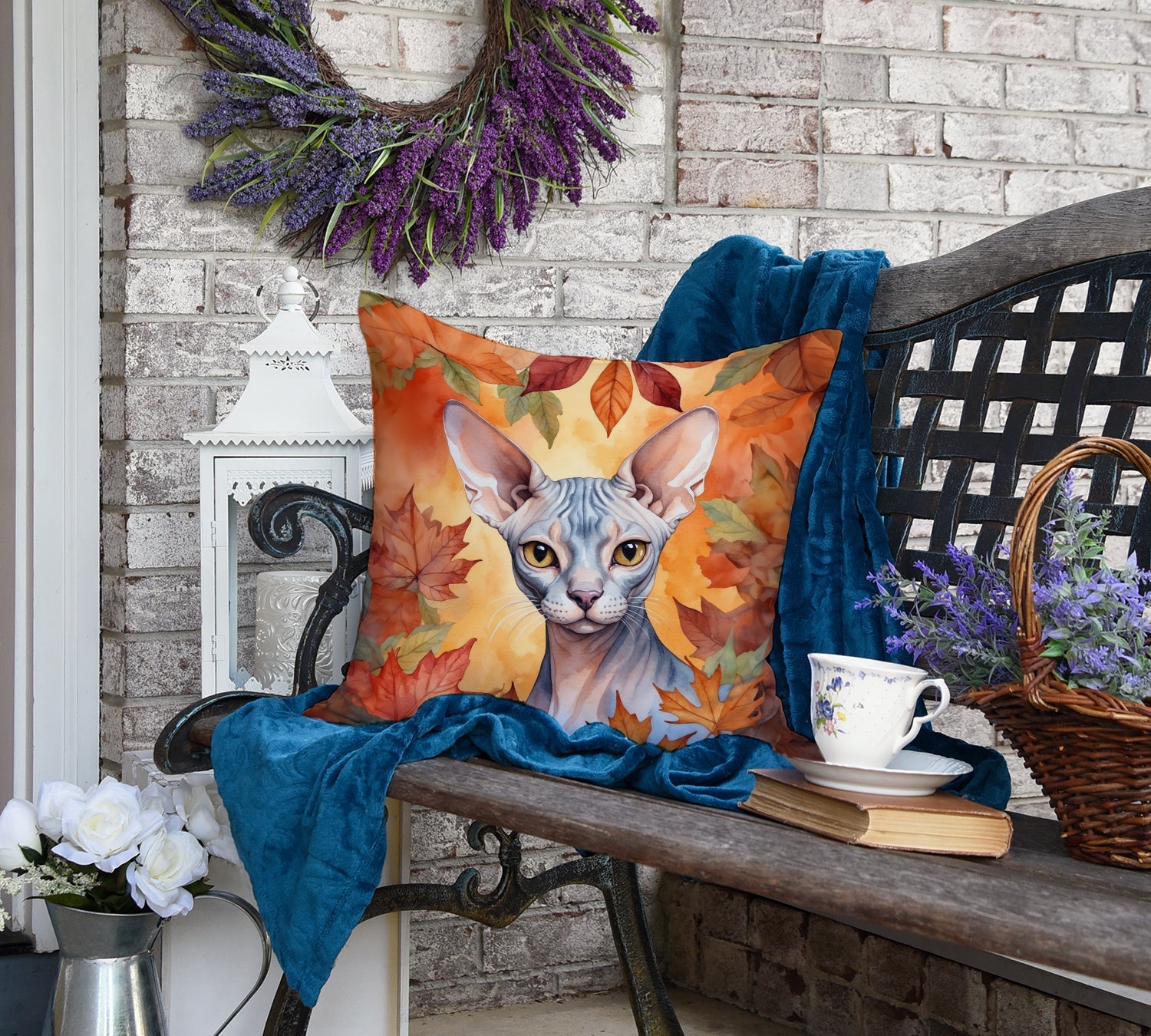 Sphynx Cat in Fall Leaves Throw Pillow