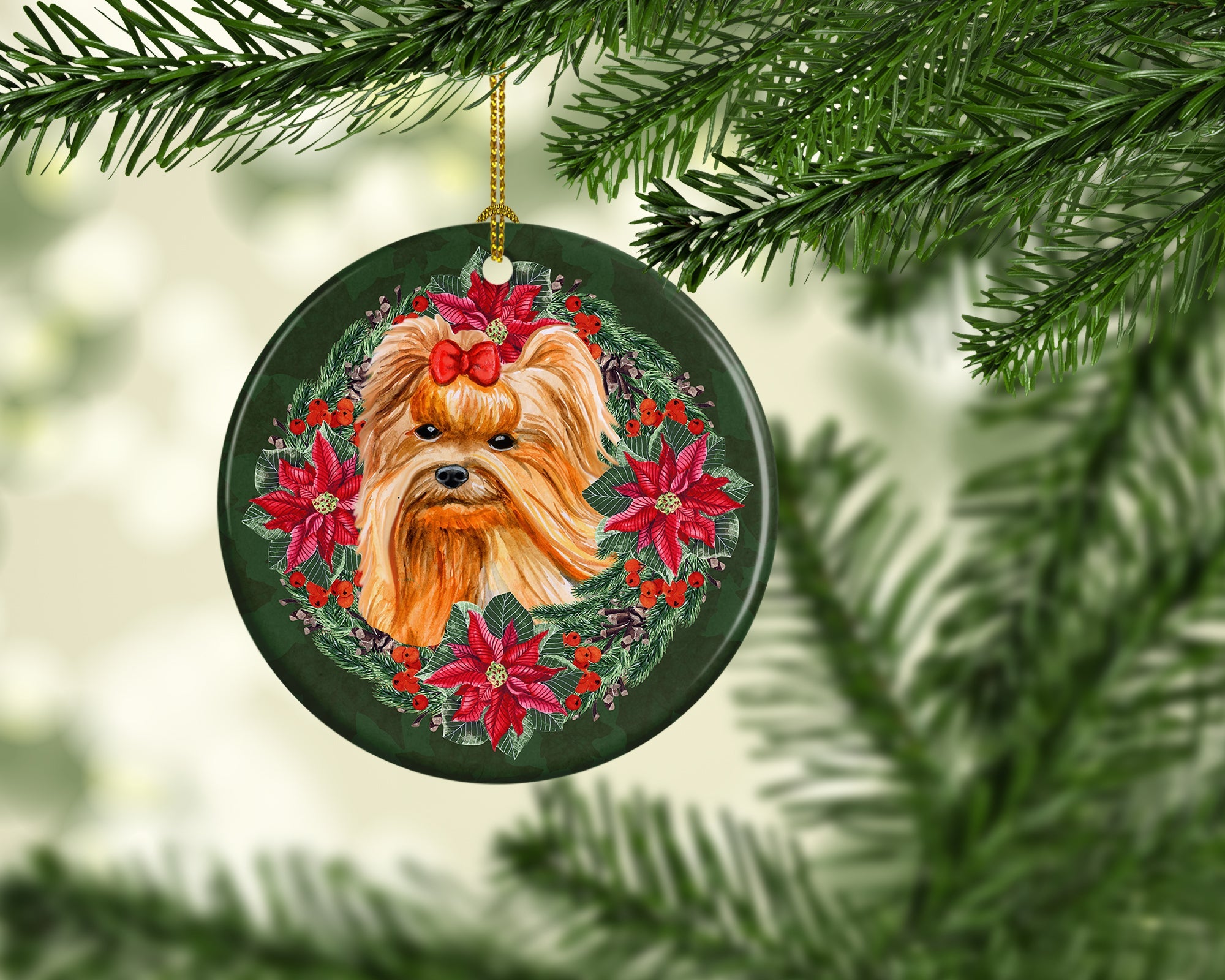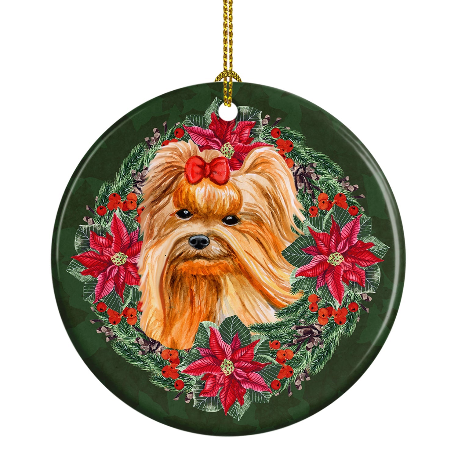 Yorkshire Terrier Poinsetta Wreath Ceramic Ornament